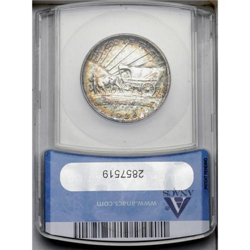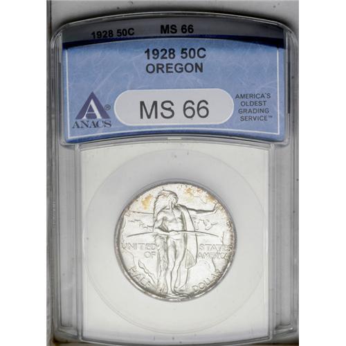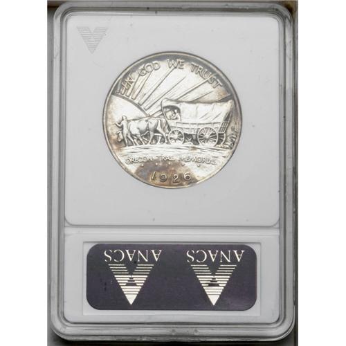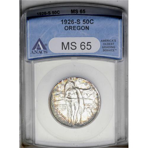 <B>1926-S<50C> Oregon--Cleaned--ANACS, AU53 Details,</B></I> glossy from polishing, retoned golden-brown; <B>1926-S Oregon MS65 ANACS,</B></I> a multicolored beauty with only slight striking weakness on the back of the wagon; and a <B>1928 Oregon MS66 ANACS,</B></I> medium golden-brown blushes grace the margins.