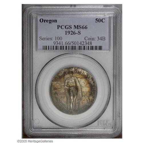 1926-S 50C Oregon MS66 PCGS. Boldly struck and well pr 1926-S[50C] Oregon MS66 PCGS.
