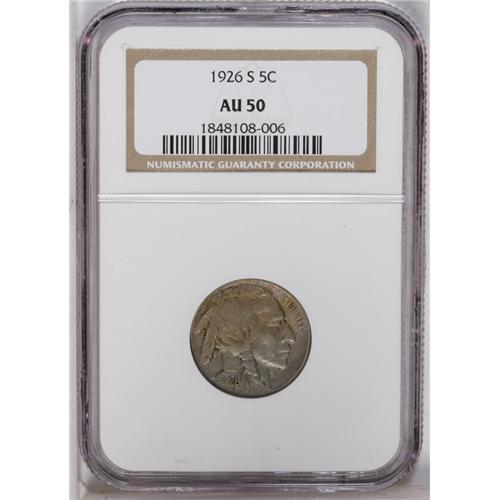 1926-S 5C AU50 NGC. Well struck on the highpoints, wit