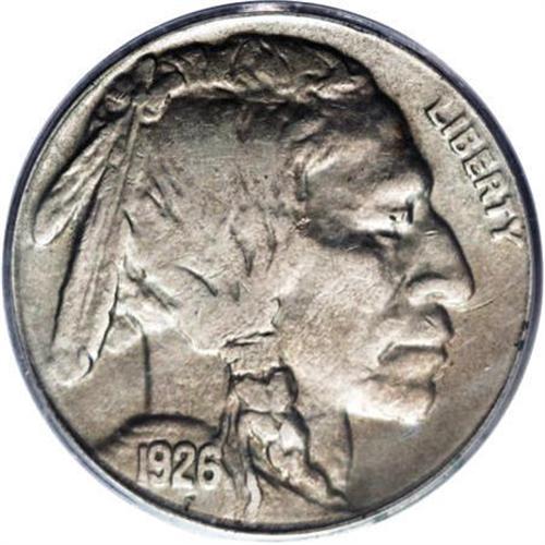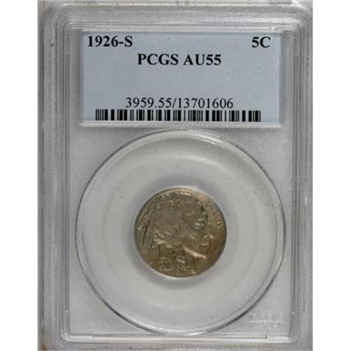 <B>1926-S 5C AU55 PCGS.</B></I> Pearl-gray and chestnut toning visits this satiny and lightly abraded key date nickel. The bison's horn is full, and all legends are sharp. The only issue in the series with a mintage of less than 1 million pieces, and the 1926-S is also much scarcer in high grades than the low mintage 1913-S Type Two and 1931-S.<BR><BR><B>Coin Engraver:</B> James E. Fraser<BR><BR><b>Shipping:</b> Coins & Currency (<a target="_blank" href="http://www.heritageauctions.com/common/shipping.php">view shipping information</a>)