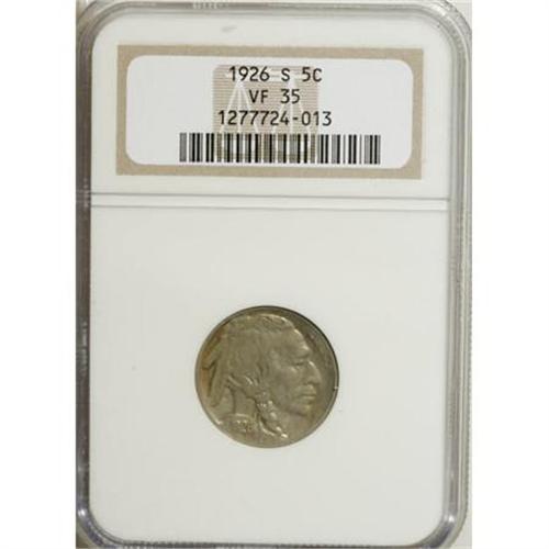 <B>1926-S 5C VF35 NGC.</B></I> NGC Census: (64/344). PCGS Population (60/446). Mintage: 970,000. Numismedia Wsl. Price for NGC/PCGS coin in VF35: $606. (#3959)<BR><BR><b>Shipping:</b> Coins & Currency (<a target="_blank" href="http://www.heritageauctions.com/common/shipping.php">view shipping information</a>)