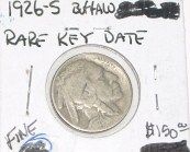 1926-S BUFFALO NICKEL RED BOOK VALUE IS $150.00 *EXTREMELY RARE EARLY KEY DATE NICKEL FINE GRADE*!! COIN CAME OUT OF SAFE!! ***Coin, Currency & All Items Listed in this auction - Grades, Conditions and Values are not Safe Deposit Coins LLC Responsibilty. Grades, Condition and Values are determined by Consigner(s) & Buyers ONLY***