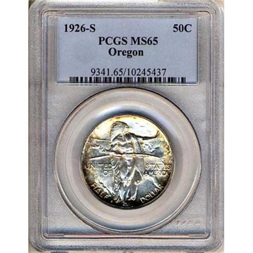 <b>1926-S Oregon Trail Half Dollar. PCGS graded MS65.</b> Toned, with some vibrant golden brown color on the obverse and reverse <b>(PCGS # 9341)</b> <i>
