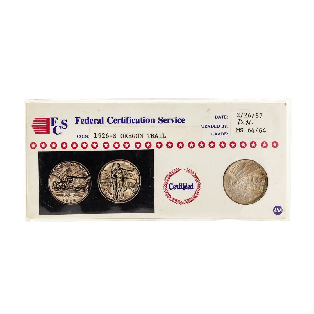 One 1926-S Oregon Trail Silver Commemorative Half Dollar Coin.
