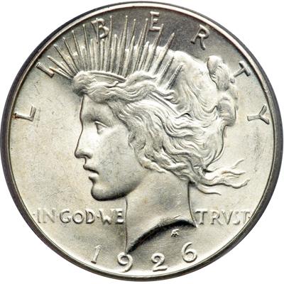 1926-S Peace Dollar. PCGS graded MS-64. A hint of light toning (PCGS # 7369).