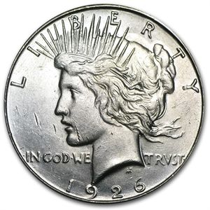1926-S Peace Dollar - Brilliant Uncirculated **|**|** Year: 1926 ; Mint Mark: Briliant Uncirculated ; Grade: S - San Francisco ; Denomination: 1 ; MSRP: $100
