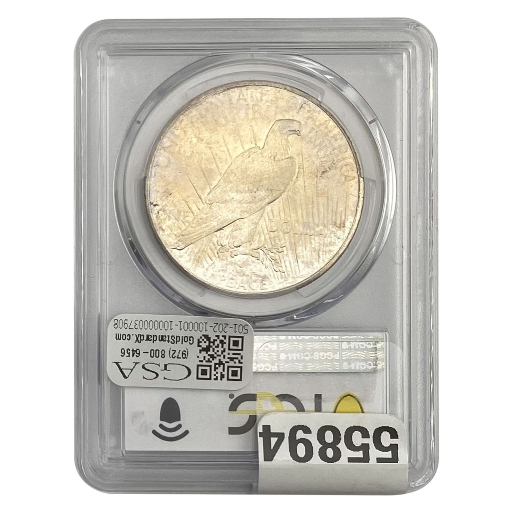 COINS AND CURRENCY LISTED IN GSA’S CATALOG AS GRADED AND ENCAPSULATED BY PCGS, NGC, ANACS, ICG, PCGS CURRENCY, PMG, PCGS BANKNOTE GRADING, CMC OR ANY OTHER THIRD-PARTY GRADING SERVICE ARE LIKEWISE SOLD “AS-IS” EXCEPT AS EXPRESSLY SET FORTH HEREIN. ALL THIRD-PARTY GRADING SERVICE GUARANTEES, INCLUDING AUTHENTICITY, ARE THE SOLE RESPONSIBILITY OF THE THIRD-PARTY GRADING SERVICE AND NOT WARRANTIES OR GUARANTEES OF GSA. BIDDERS SHOULD CONTACT THESE THIRD-PARTY GRADING SERVICES DIRECTLY WITH RESPECT TO ANY CLAIMS OR QUESTIONS THEY MAY HAVE CONCERNING THEIR GUARANTEES AND WARRANTIES. BIDDERS ACKNOWLEDGE AND AGREE THAT AUCTIONEER IS NOT BOUND BY OR LIABLE FOR ANY OPINION OR CERTIFICATION BY ANY THIRD-PARTY GRADING SERVICE. REMOVAL OF A PRODUCT FROM ITS PROTECTIVE CASING OR HOLDER OR ALTERATION OF ANY COIN HOLDER WAIVES ALL RIGHTS CONCERNING THE PRODUCT CONTAINED THEREIN.