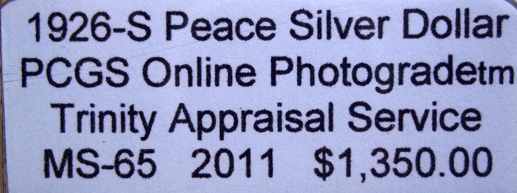 PCGS Online Photograde(tm) MS-66 Appraised at $1,350.00 by a Certified G.I.A. Appraiser from Trinity Appraisal Service, Control# F035416.