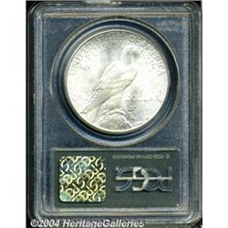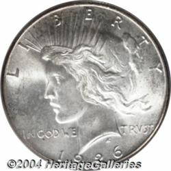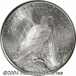 <B>1926-S<S$1> MS66 PCGS.</B></I> Ex: Jack Lee. One of the most common San Francisco Peace Dollars in Gem condition but still somewhat scarce at that level, and a rarity any finer. This is a well-struck and problem free example whose nearly pristine surfaces are faultless aside from a small toning spot in the lower left obverse field and a few scattered faint milling marks. Essentially brilliant, with pale hints of shimmering metallic rose in the fields providing the only color, and with a cool lustrous glow emanating from the richly frosted surfaces. Population: 30 in 66, 1 finer (3/04).<BR><I>Ex: Long Beach Signature Sale (Heritage, 2/01), lot 6493, which realized $7,762.50.</B></I><BR><I>From the JFS Collection.</B></I> <BR><BR><B>Important notice:</B> Heritage usually auctions material at the rate of 200-250 lots per hour. On some occasions eBay Live bid software or the Internet may not be able to keep up with the pace of the auction. We recommend placing a realistic absentee bid now as insurance to avoid disappointment. Occasionally the auctioneer may eliminate or reject an eBay Live bid, and the auctioneer may also reopen a lot after the close of the eBay live bidding (usually because we missed an audience bid), and may reject your bid even if it shows you as the winning bidder. By bidding via eBay Live, you agree that Heritage may award the lot to another bidder at its sole discretion under the circumstances described above or any other reasonable circumstances. Since eBay bids are not shown to us until we open the lot on the floor, we treat those bids just like floor bids. In most cases the floor responds before the eBay bid is presented to us, due to Internet lag time, so for consistency we have made it a policy that floor bids are always considered first over tie eBay live bids. Also please note that all Heritage lots purchased through eBay Live carry a 20% Buyer's Premium. Please make sure you read the Terms and Conditions before you bid. </span></font></tr></table></td></tr></table>