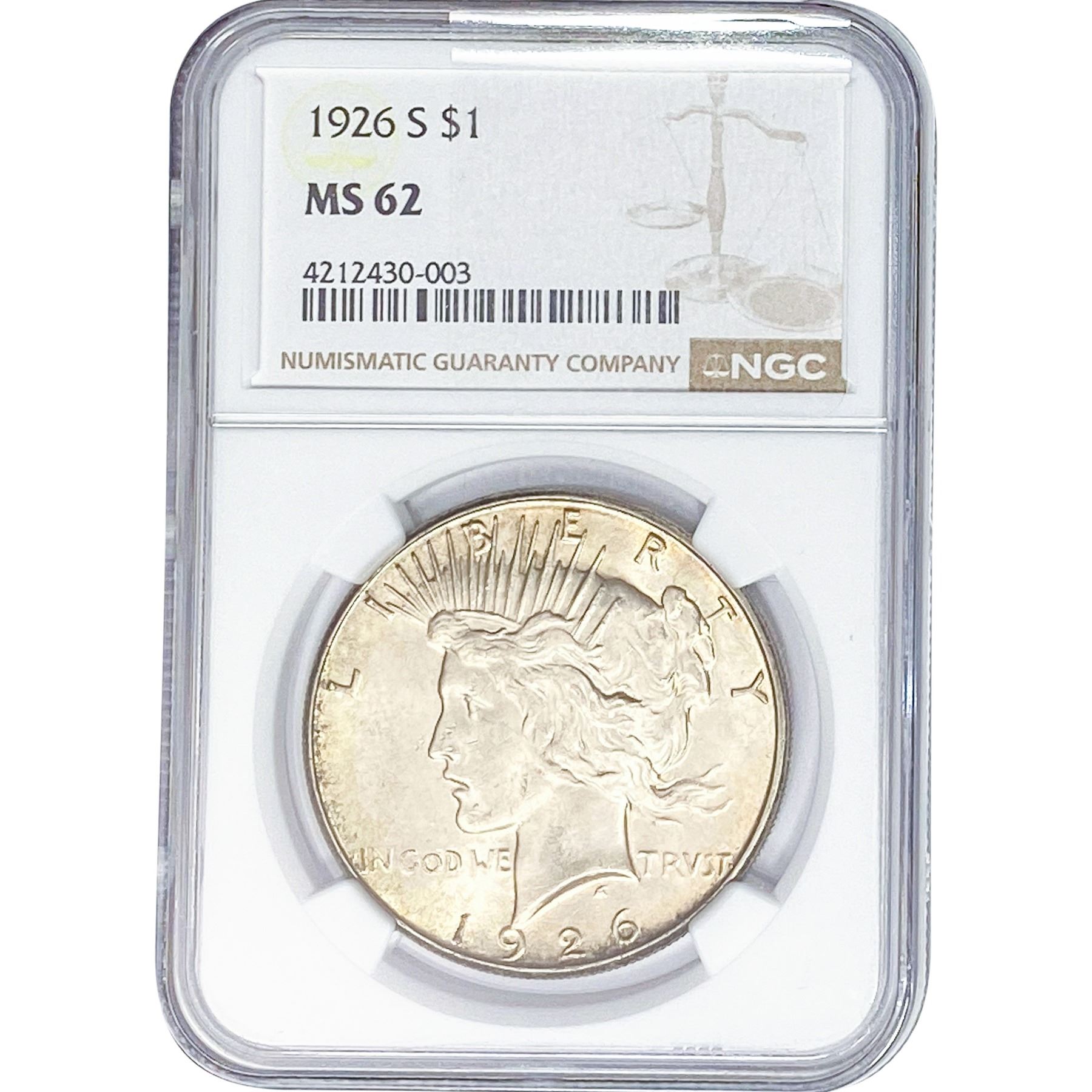 1926-S Silver Peace Dollar NGC MS62