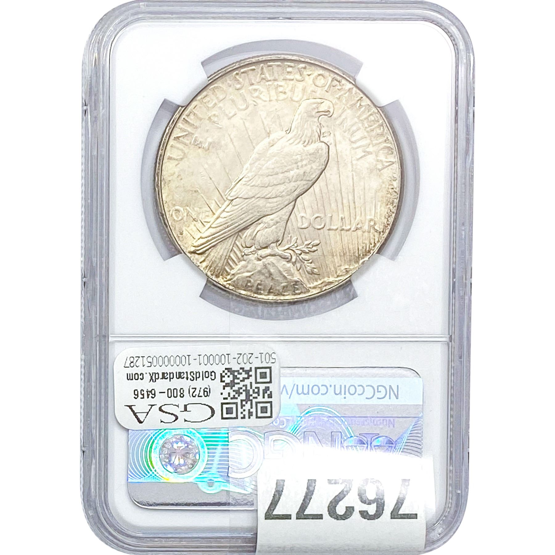 e. Coins sold referencing a third-party grading service are sold “AS IS” without any express or implied warranty, except for a guarantee by GSA that they are genuine. Removal or alteration of the holder, voids all of Bidder’s claims concerning that Product. Certain warranties may be available from the grading services and Bidders are referred to them for further details: Numismatic Guaranty Corporation (NGC), PO Box 4776, Sarasota, FL 34230, www.ngccoin.com/services/writtenguarantee.asp; Professional Coin Grading Services (PCGS), PO Box 9458, Newport Beach, CA 92658, www.pcgs.com/guarantee.html; ANACS, 6555 S. Kenton St., Ste. 303, Englewood, CO 80111; and Independent Coin Grading Co. (ICG), 7901 East Bellview, Ave., Suite 50, Englewood, CO 80111.