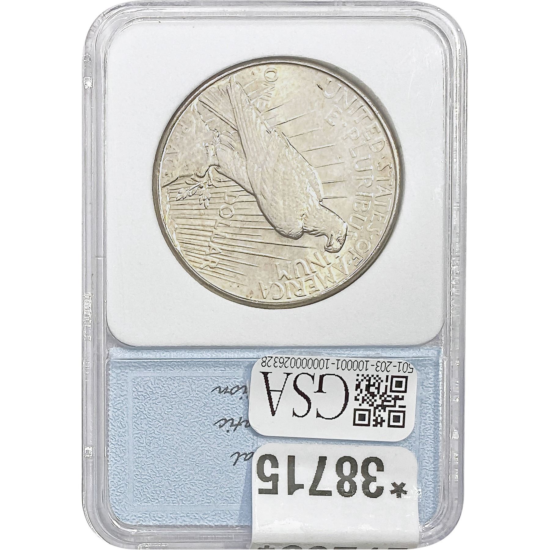 COINS AND CURRENCY LISTED IN GSA’S CATALOG AS GRADED AND ENCAPSULATED BY PCGS, NGC, ANACS, ICG, PCGS CURRENCY, PMG, PCGS BANKNOTE GRADING, CMC OR ANY OTHER THIRD-PARTY GRADING SERVICE ARE LIKEWISE SOLD “AS-IS” EXCEPT AS EXPRESSLY SET FORTH HEREIN. ALL THIRD-PARTY GRADING SERVICE GUARANTEES, INCLUDING AUTHENTICITY, ARE THE SOLE RESPONSIBILITY OF THE THIRD-PARTY GRADING SERVICE AND NOT WARRANTIES OR GUARANTEES OF GSA. BIDDERS SHOULD CONTACT THESE THIRD-PARTY GRADING SERVICES DIRECTLY WITH RESPECT TO ANY CLAIMS OR QUESTIONS THEY MAY HAVE CONCERNING THEIR GUARANTEES AND WARRANTIES. BIDDERS ACKNOWLEDGE AND AGREE THAT AUCTIONEER IS NOT BOUND BY OR LIABLE FOR ANY OPINION OR CERTIFICATION BY ANY THIRD-PARTY GRADING SERVICE. REMOVAL OF A PRODUCT FROM ITS PROTECTIVE CASING OR HOLDER OR ALTERATION OF ANY COIN HOLDER WAIVES ALL RIGHTS CONCERNING THE PRODUCT CONTAINED THEREIN.