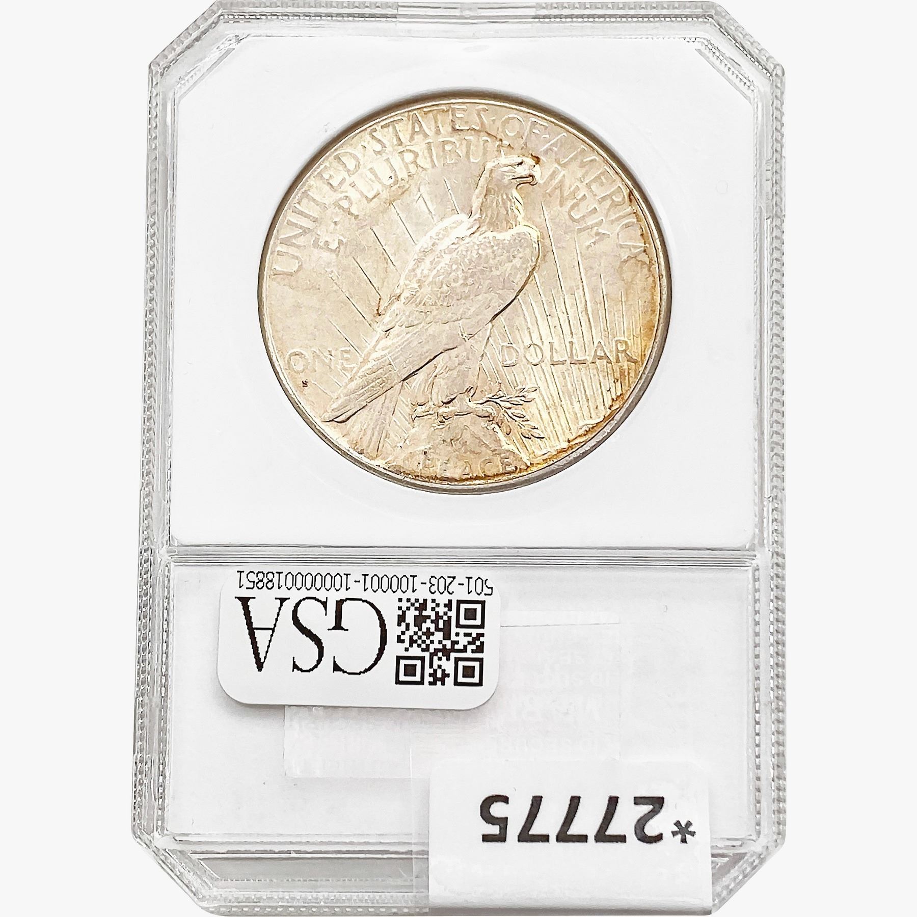 l. All non-certified coins and currency are guaranteed genuine, but are not guaranteed as to grade, since grading is a matter of opinion, an art and not a science, and therefore the description rendered by GSA or any third-party grading service may not agree with the opinion of others (including trained experts), and the same expert may not grade the same item with the same grade at two different times. GSA may, but is not obligated to, express an opinion as to non-certified numismatic items, in GSA’s opinion, or by its employees’ experience and the current interpretation of the American Numismatic Association’s standards as of the date the catalog was prepared. There is no guarantee or warranty expressed or implied that the grading opinions utilized by GSA, if any, will meet the standards of any grading service at any time in the future.