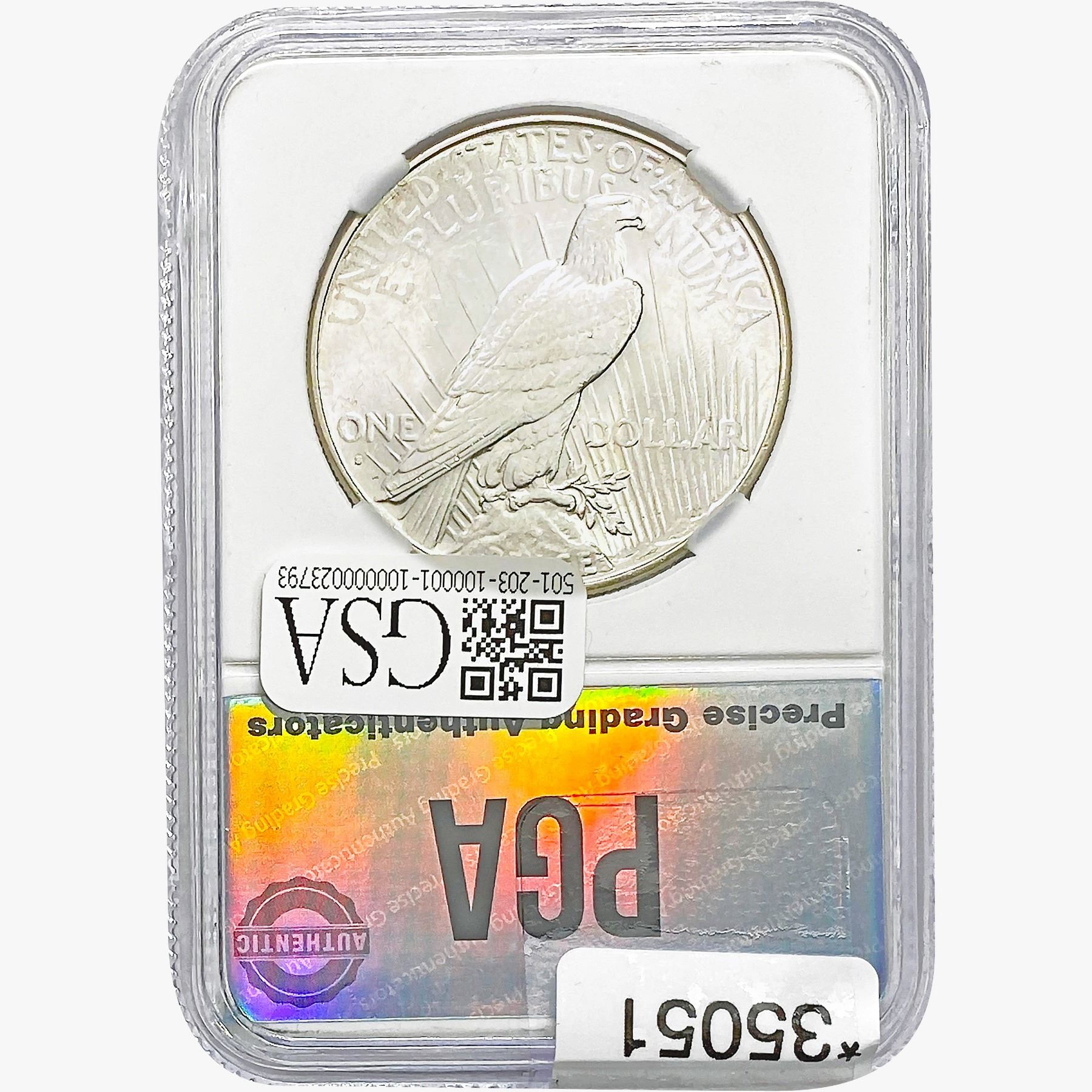 COINS AND CURRENCY LISTED IN GSA’S CATALOG AS GRADED AND ENCAPSULATED BY PCGS, NGC, ANACS, ICG, PCGS CURRENCY, PMG, PCGS BANKNOTE GRADING, CMC OR ANY OTHER THIRD-PARTY GRADING SERVICE ARE LIKEWISE SOLD “AS-IS” EXCEPT AS EXPRESSLY SET FORTH HEREIN. ALL THIRD-PARTY GRADING SERVICE GUARANTEES, INCLUDING AUTHENTICITY, ARE THE SOLE RESPONSIBILITY OF THE THIRD-PARTY GRADING SERVICE AND NOT WARRANTIES OR GUARANTEES OF GSA. BIDDERS SHOULD CONTACT THESE THIRD-PARTY GRADING SERVICES DIRECTLY WITH RESPECT TO ANY CLAIMS OR QUESTIONS THEY MAY HAVE CONCERNING THEIR GUARANTEES AND WARRANTIES. BIDDERS ACKNOWLEDGE AND AGREE THAT AUCTIONEER IS NOT BOUND BY OR LIABLE FOR ANY OPINION OR CERTIFICATION BY ANY THIRD-PARTY GRADING SERVICE. REMOVAL OF A PRODUCT FROM ITS PROTECTIVE CASING OR HOLDER OR ALTERATION OF ANY COIN HOLDER WAIVES ALL RIGHTS CONCERNING THE PRODUCT CONTAINED THEREIN.