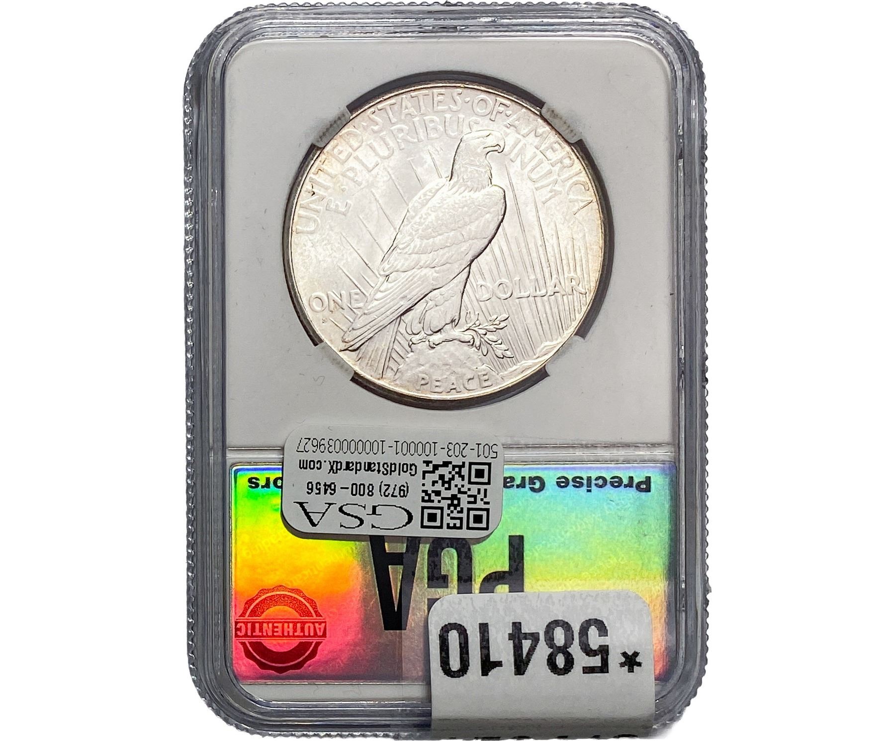 COINS AND CURRENCY LISTED IN GSA’S CATALOG AS GRADED AND ENCAPSULATED BY PCGS, NGC, ANACS, ICG, PCGS CURRENCY, PMG, PCGS BANKNOTE GRADING, CMC OR ANY OTHER THIRD-PARTY GRADING SERVICE ARE LIKEWISE SOLD “AS-IS” EXCEPT AS EXPRESSLY SET FORTH HEREIN. ALL THIRD-PARTY GRADING SERVICE GUARANTEES, INCLUDING AUTHENTICITY, ARE THE SOLE RESPONSIBILITY OF THE THIRD-PARTY GRADING SERVICE AND NOT WARRANTIES OR GUARANTEES OF GSA. BIDDERS SHOULD CONTACT THESE THIRD-PARTY GRADING SERVICES DIRECTLY WITH RESPECT TO ANY CLAIMS OR QUESTIONS THEY MAY HAVE CONCERNING THEIR GUARANTEES AND WARRANTIES. BIDDERS ACKNOWLEDGE AND AGREE THAT AUCTIONEER IS NOT BOUND BY OR LIABLE FOR ANY OPINION OR CERTIFICATION BY ANY THIRD-PARTY GRADING SERVICE. REMOVAL OF A PRODUCT FROM ITS PROTECTIVE CASING OR HOLDER OR ALTERATION OF ANY COIN HOLDER WAIVES ALL RIGHTS CONCERNING THE PRODUCT CONTAINED THEREIN.