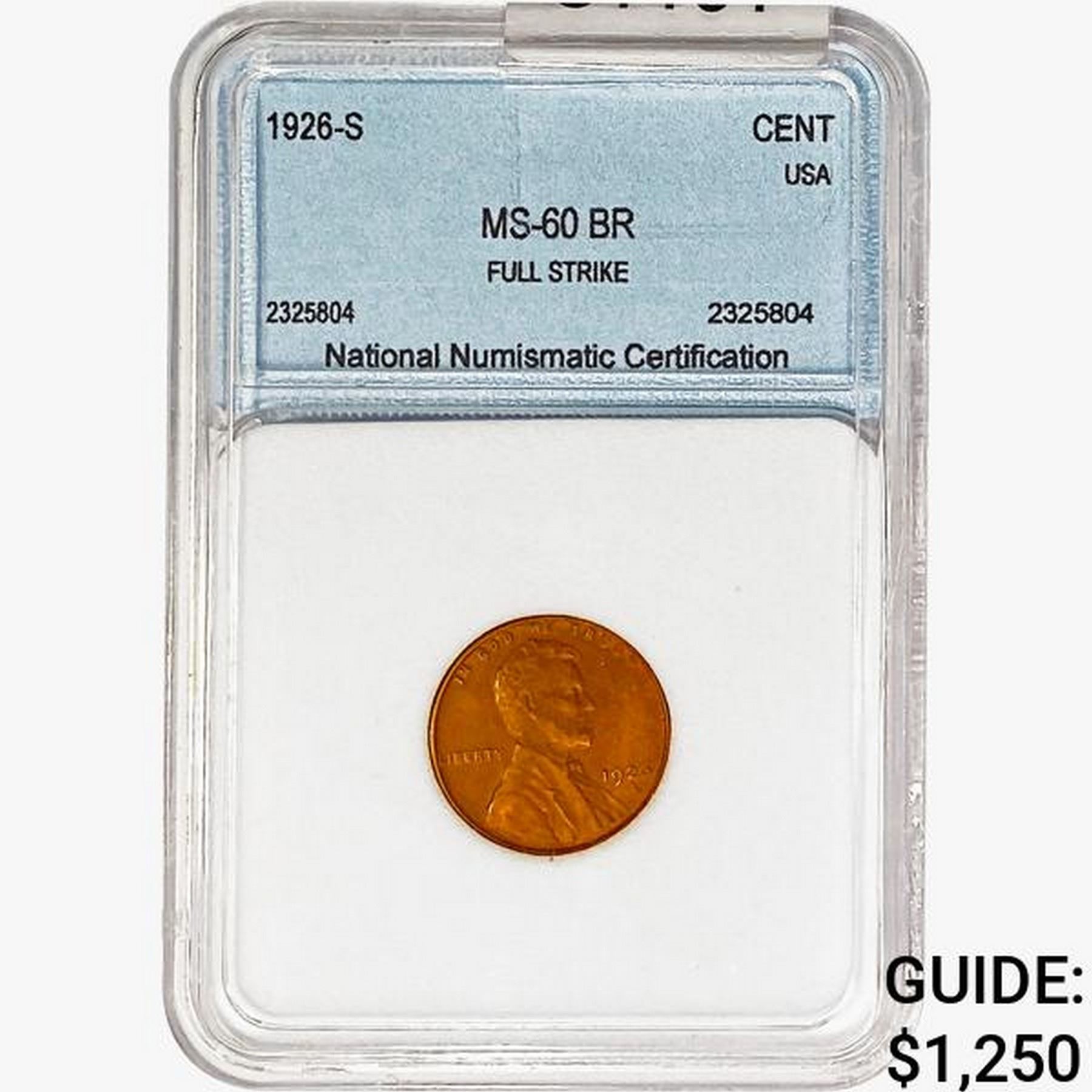 1926-S Wheat Cent NNC MS60 BR Full Strike