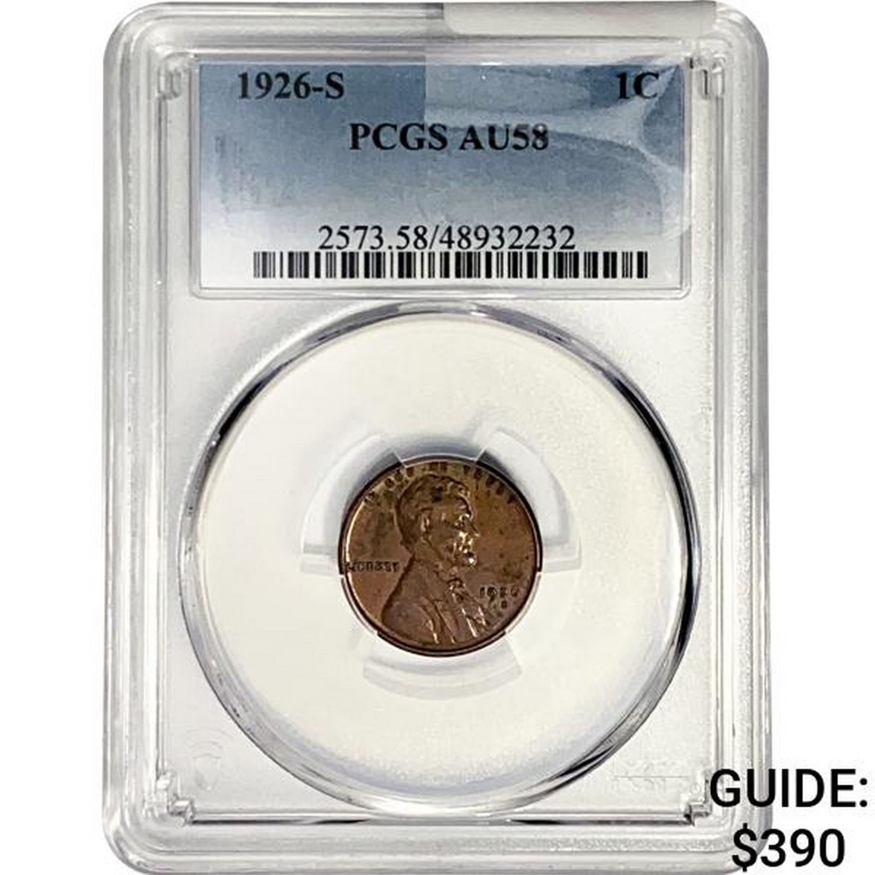 1926-S Wheat Cent PCGS AU58