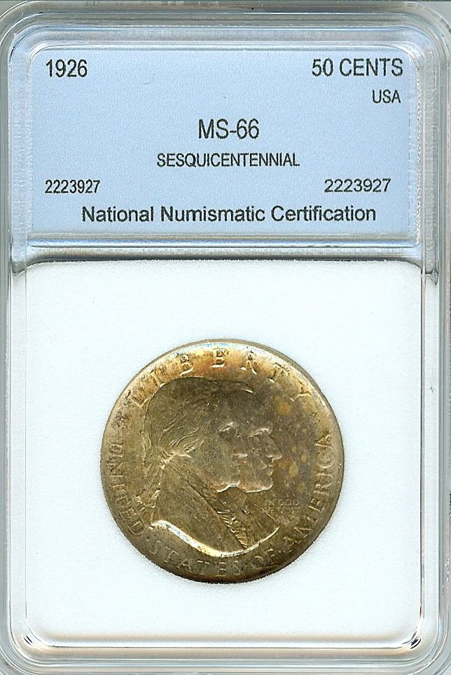1926 SESQUI SILVER 50 CENTS NNC MS66