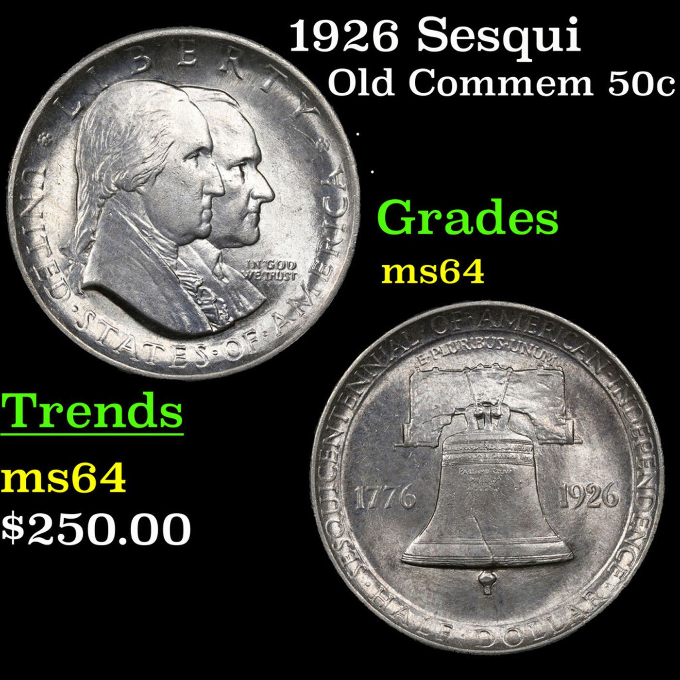 1926 Sesqui Old Commem Half Dollar 50c Grades Choice Unc. This Coin is Very Reminiscent of The Reverse of the Franklin Half which would be Used 22 Years After this Coin was Struck. When Examining a Sesquicentennial Commemorative The first places to show wear on the coins are Washington's cheekbone and the lower part of the bell.