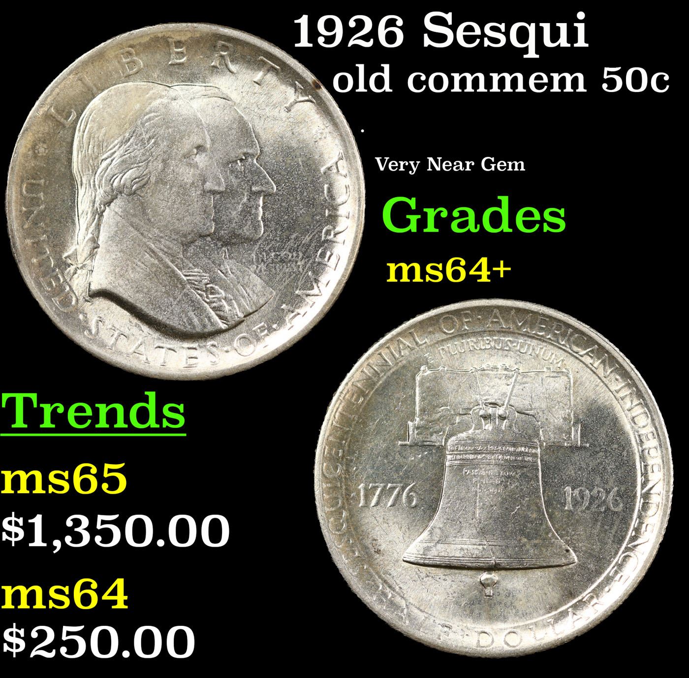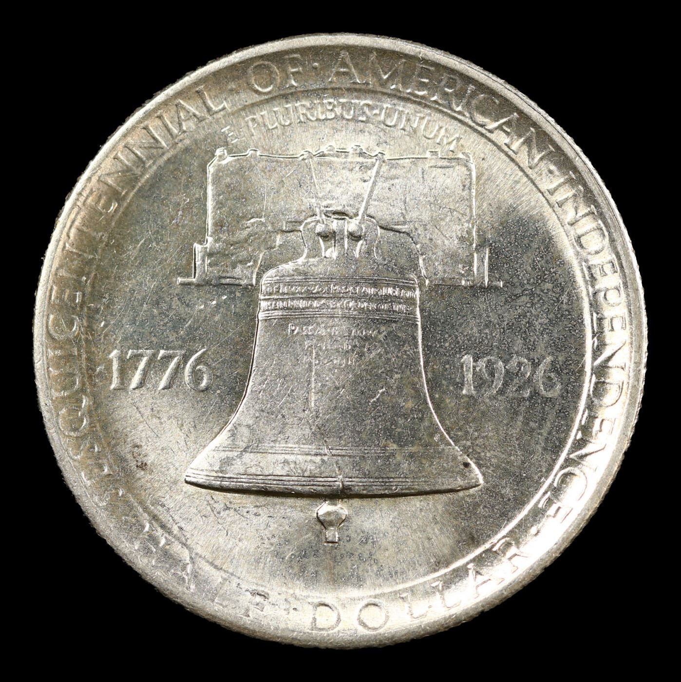1926 Sesqui Old Commem Half Dollar 50c Grades Choice+ Unc. This Coin is Very Reminiscent of The Reverse of the Franklin Half which would be Used 22 Years After this Coin was Struck. When Examining a Sesquicentennial Commemorative The first places to show wear on the coins are Washington's cheekbone and the lower part of the bell.