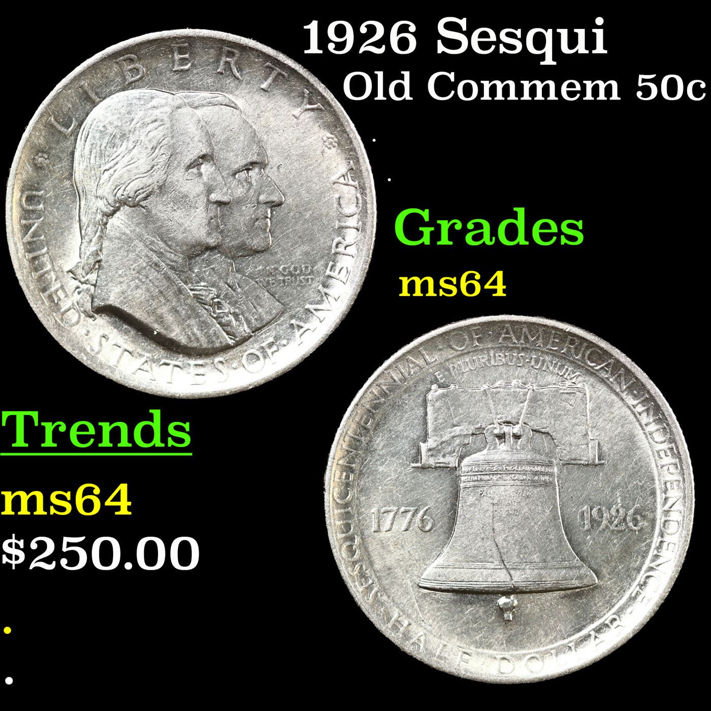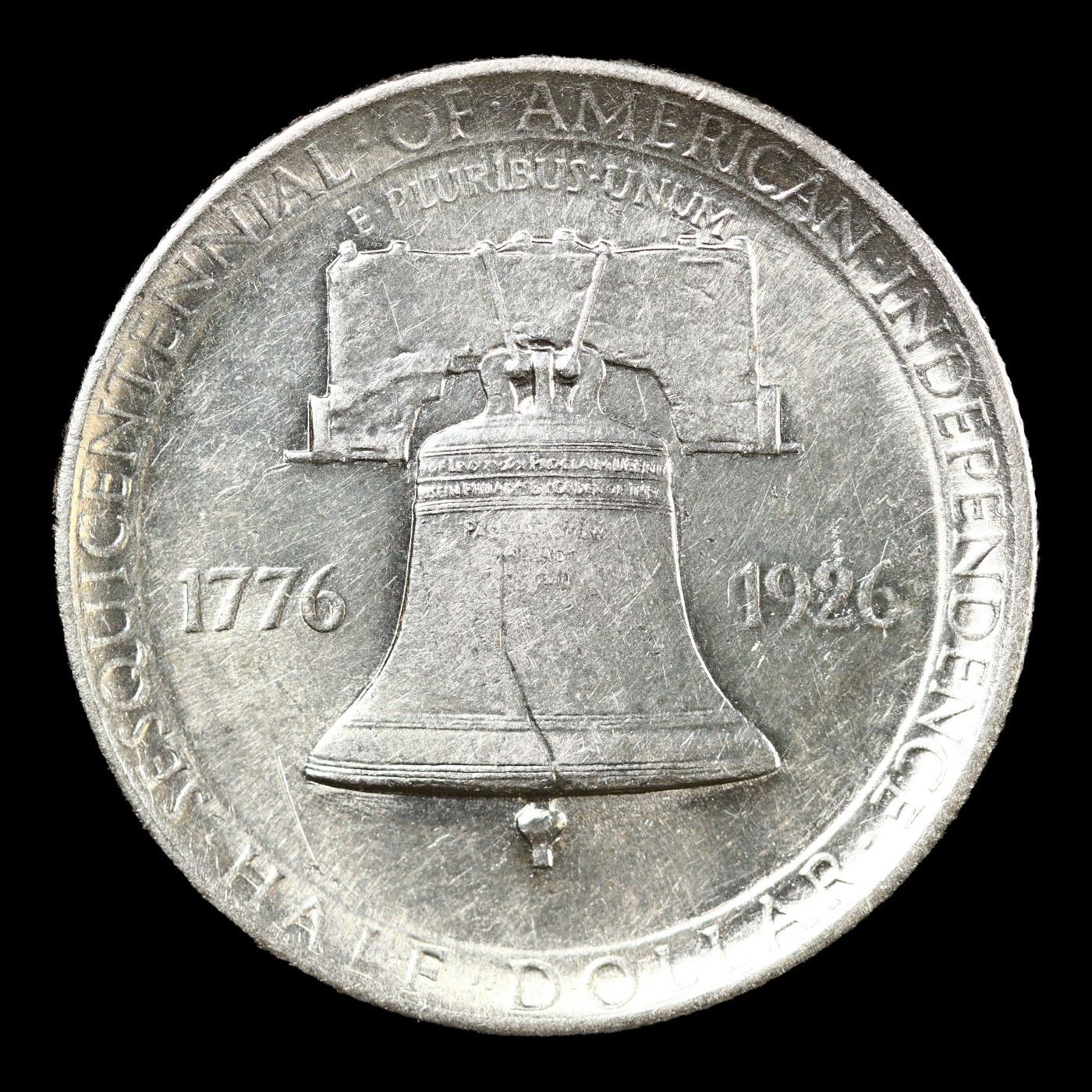 1926 Sesqui Old Commem Half Dollar 50c Grades Choice Unc. This Coin is Very Reminiscent of The Reverse of the Franklin Half which would be Used 22 Years After this Coin was Struck. When Examining a Sesquicentennial Commemorative The first places to show wear on the coins are Washington's cheekbone and the lower part of the bell.