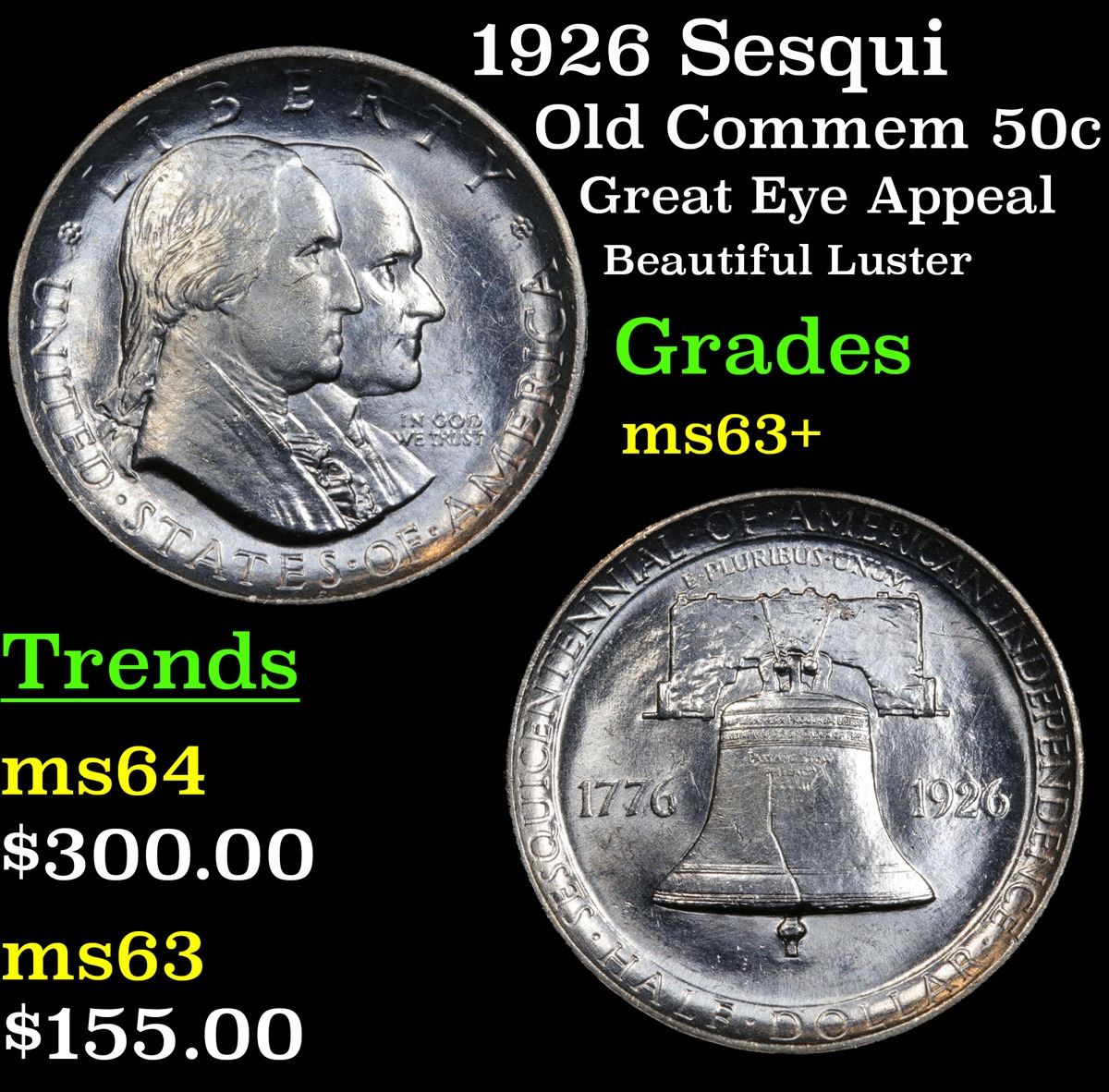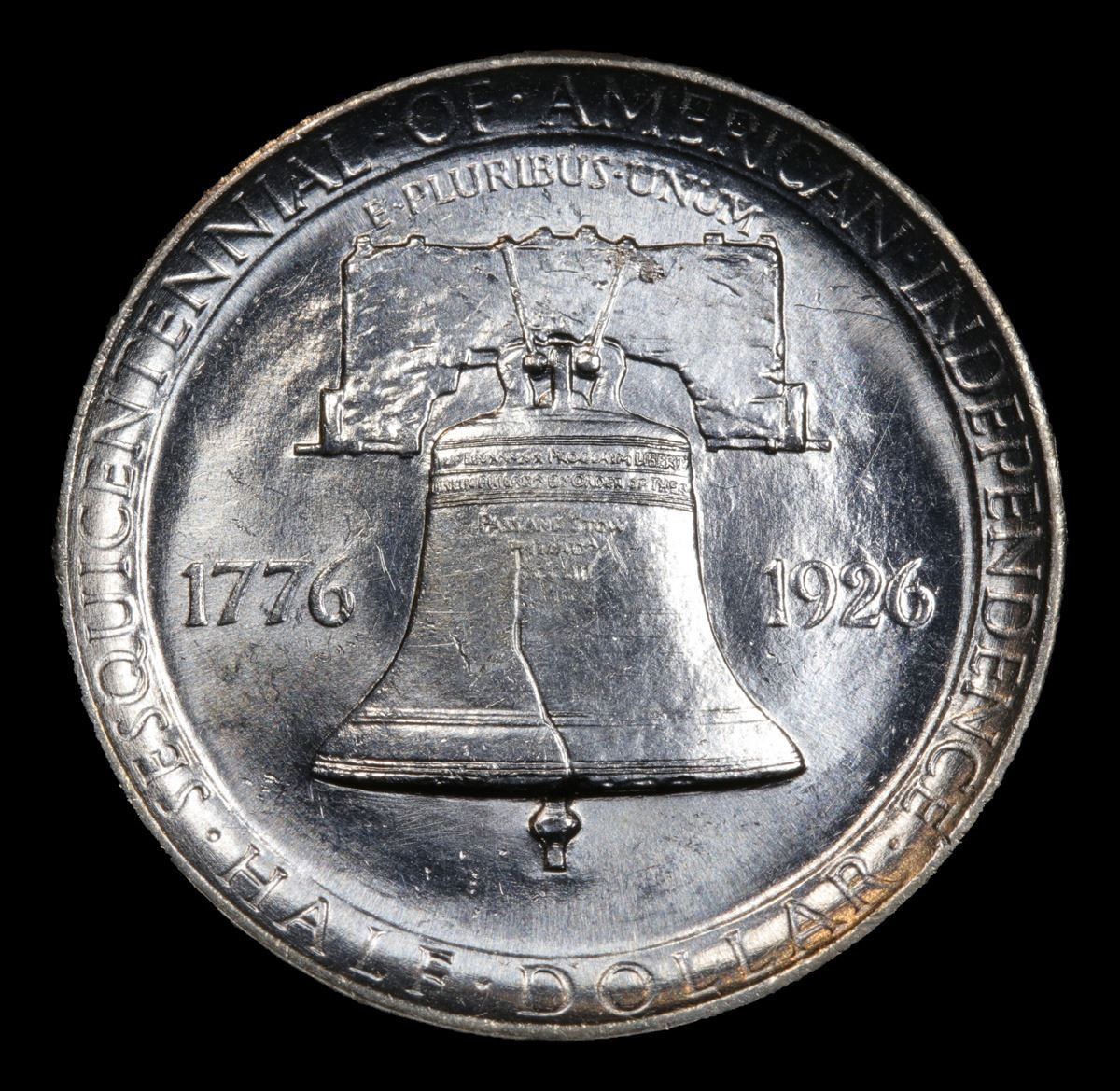 1926 Sesqui Great Eye Appeal Beautiful Luster Old Commem Half Dollar 50c Grades Select+ Unc. This Coin is Very Reminiscent of The Reverse of the Franklin Half which would be Used 22 Years After this Coin was Struck. When Examining a Sesquicentennial Commemorative The first places to show wear on the coins are Washington's cheekbone and the lower part of the bell. A Corey's Pick