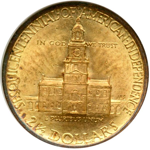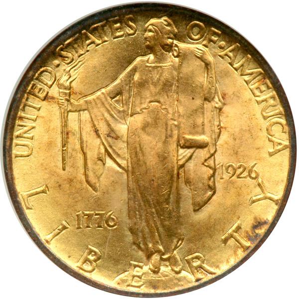 1926 Sesquicentennial Gold $2.50. NGC graded MS-64 PQ. Nice gold toning, has a smooth flow of golden frost from center to periphery.
