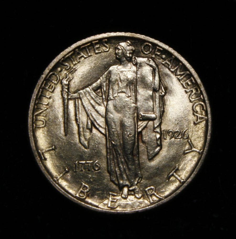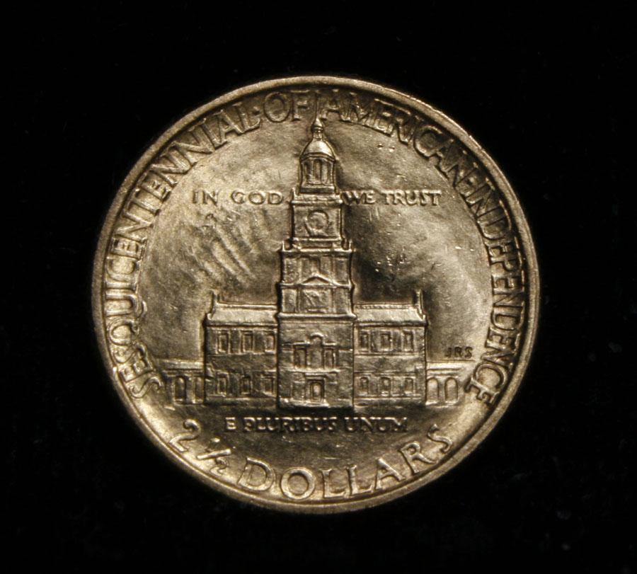 Beautiful well struck example that shows the usually missing rays of the sun behind Independence Hall.  Very nice lustrous example of this rare Gold Commemorative.   Issued in 1926 along with the Silver 50c piece to celebrate the 150th anniversary of the signing of the Declaration of Independence.  When Examining a Gold Sesquicentennial wear first appears on the obverse at the bottom of the scroll; on the reverse, check the clock tower just above the roof line. Coin World's Coin Values lists ms65 at $3000 and The Wholesale Greysheet lists ms65 at $2750.  Estimated Value $2800