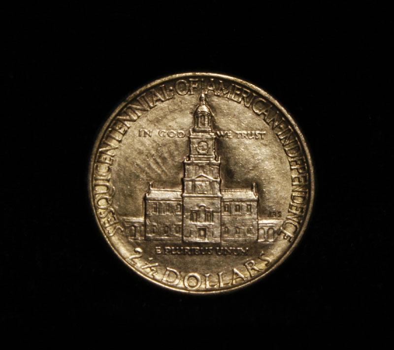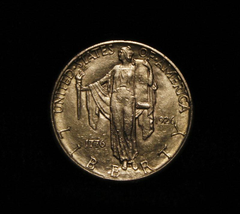 Very nice lustrous example of this rare Gold Commemorative. Issued in 1926 along with the Silver 50c piece to celebrate the 150th anniversary of the signing of the Declaration of Independence. When Examining a Gold Sesquicentennial wear first appears on the obverse at the bottom of the scroll; on the reverse, check the clock tower just above the roof line. Coin World's Coin Values lists ms63 at $800 and The Wholesale Greysheet lists ms63 at $650. Estimated Value $750