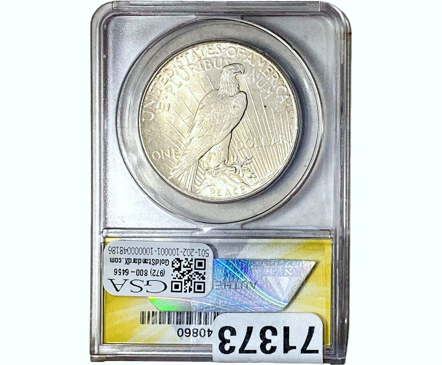 COINS AND CURRENCY LISTED IN GSA’S CATALOG AS GRADED AND ENCAPSULATED BY PCGS, NGC, ANACS, ICG, PCGS CURRENCY, PMG, PCGS BANKNOTE GRADING, CMC OR ANY OTHER THIRD-PARTY GRADING SERVICE ARE LIKEWISE SOLD “AS-IS” EXCEPT AS EXPRESSLY SET FORTH HEREIN. ALL THIRD-PARTY GRADING SERVICE GUARANTEES, INCLUDING AUTHENTICITY, ARE THE SOLE RESPONSIBILITY OF THE THIRD-PARTY GRADING SERVICE AND NOT WARRANTIES OR GUARANTEES OF GSA. BIDDERS SHOULD CONTACT THESE THIRD-PARTY GRADING SERVICES DIRECTLY WITH RESPECT TO ANY CLAIMS OR QUESTIONS THEY MAY HAVE CONCERNING THEIR GUARANTEES AND WARRANTIES. BIDDERS ACKNOWLEDGE AND AGREE THAT AUCTIONEER IS NOT BOUND BY OR LIABLE FOR ANY OPINION OR CERTIFICATION BY ANY THIRD-PARTY GRADING SERVICE. REMOVAL OF A PRODUCT FROM ITS PROTECTIVE CASING OR HOLDER OR ALTERATION OF ANY COIN HOLDER WAIVES ALL RIGHTS CONCERNING THE PRODUCT CONTAINED THEREIN.