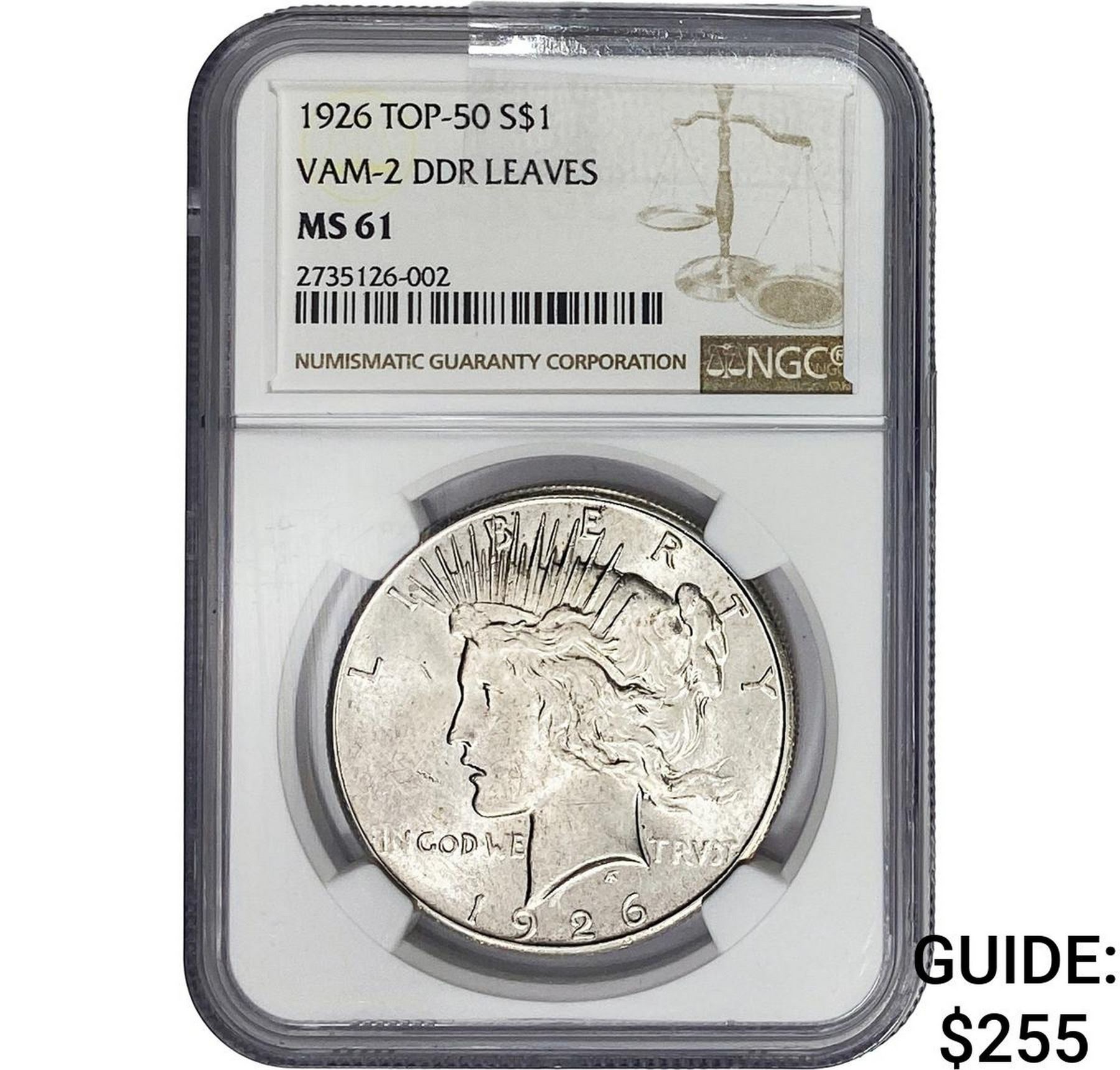 1926 Silver Peace Dollar NGC MS61 Top-50 Vam-2 DDR :eaves