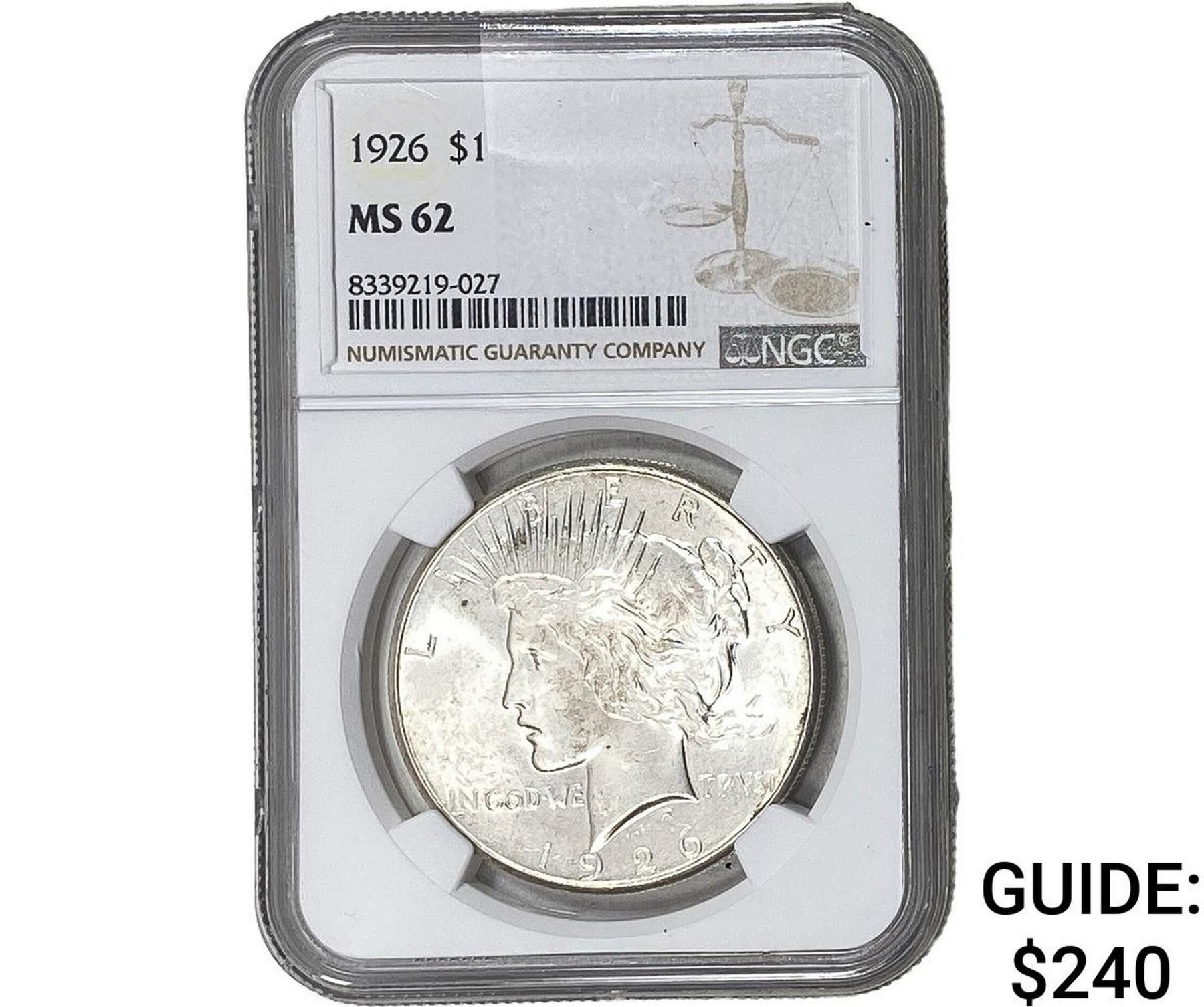 1926 Silver Peace Dollar NGC MS62