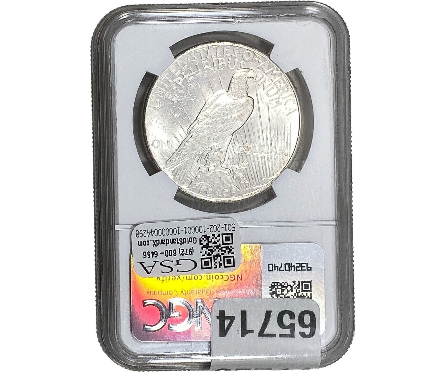 e. Coins sold referencing a third-party grading service are sold “AS IS” without any express or implied warranty, except for a guarantee by GSA that they are genuine. Removal or alteration of the holder, voids all of Bidder’s claims concerning that Product. Certain warranties may be available from the grading services and Bidders are referred to them for further details: Numismatic Guaranty Corporation (NGC), PO Box 4776, Sarasota, FL 34230, www.ngccoin.com/services/writtenguarantee.asp; Professional Coin Grading Services (PCGS), PO Box 9458, Newport Beach, CA 92658, www.pcgs.com/guarantee.html; ANACS, 6555 S. Kenton St., Ste. 303, Englewood, CO 80111; and Independent Coin Grading Co. (ICG), 7901 East Bellview, Ave., Suite 50, Englewood, CO 80111.