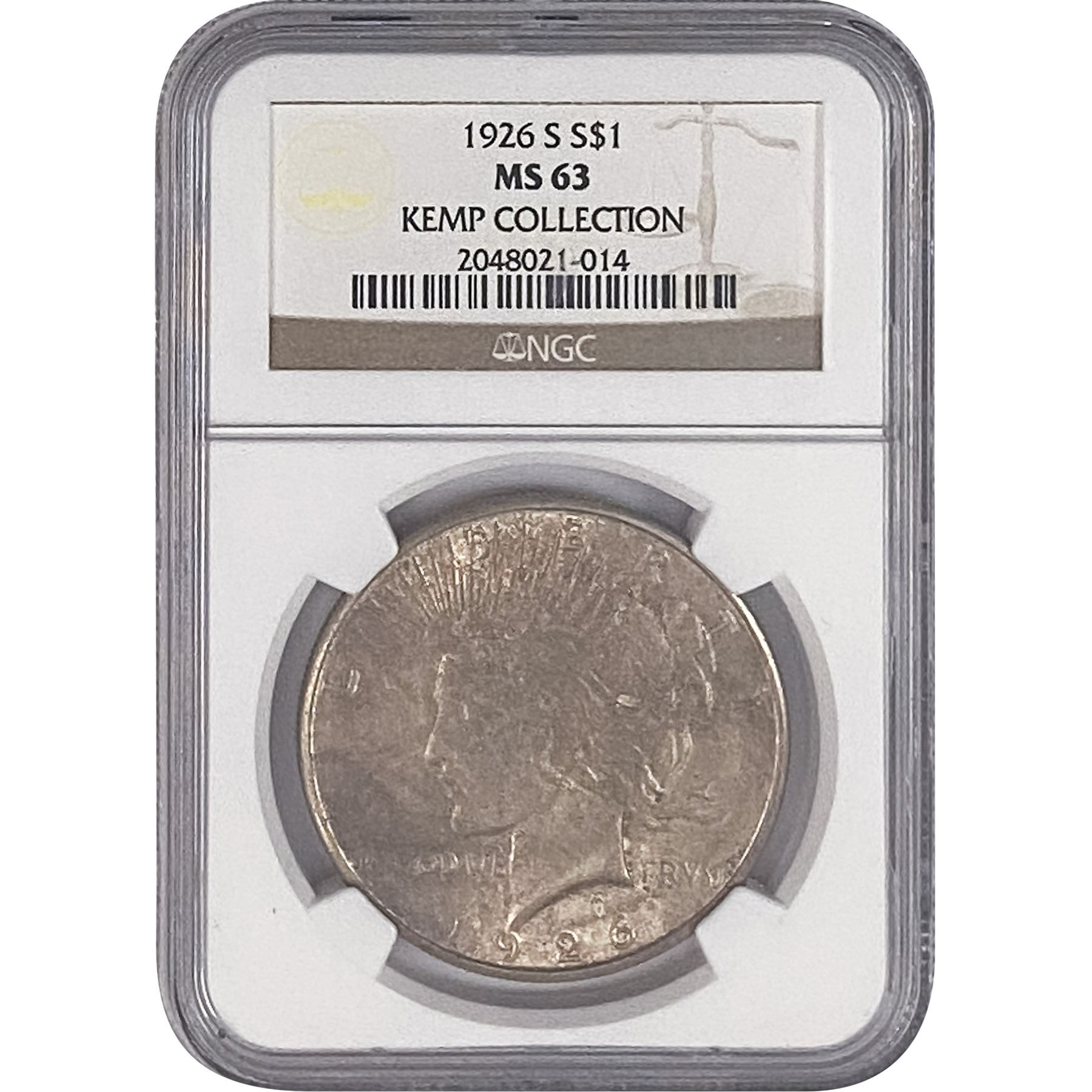 1926 Silver Peace Dollar NGC MS63 Kemp Collection