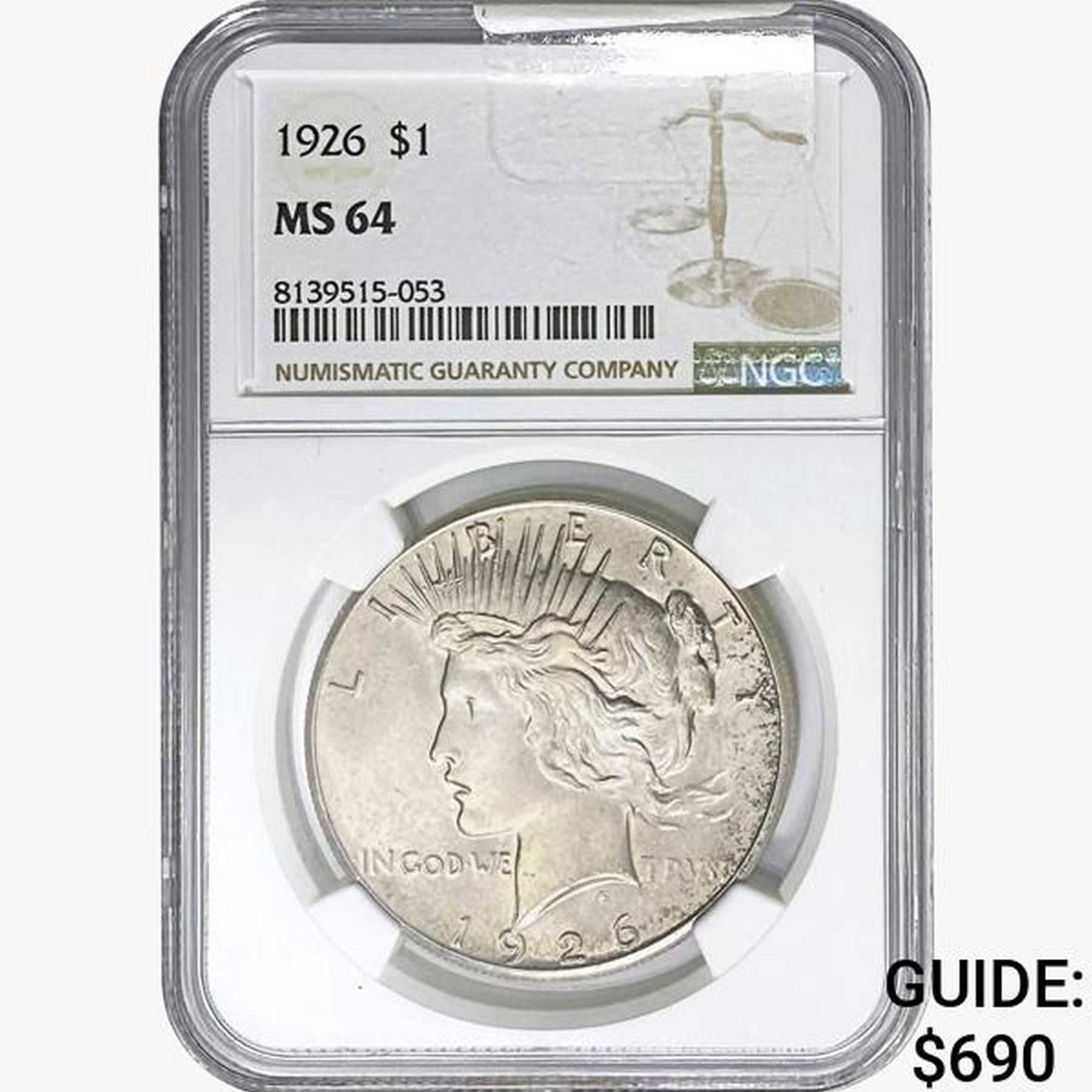 1926 Silver Peace Dollar NGC MS64