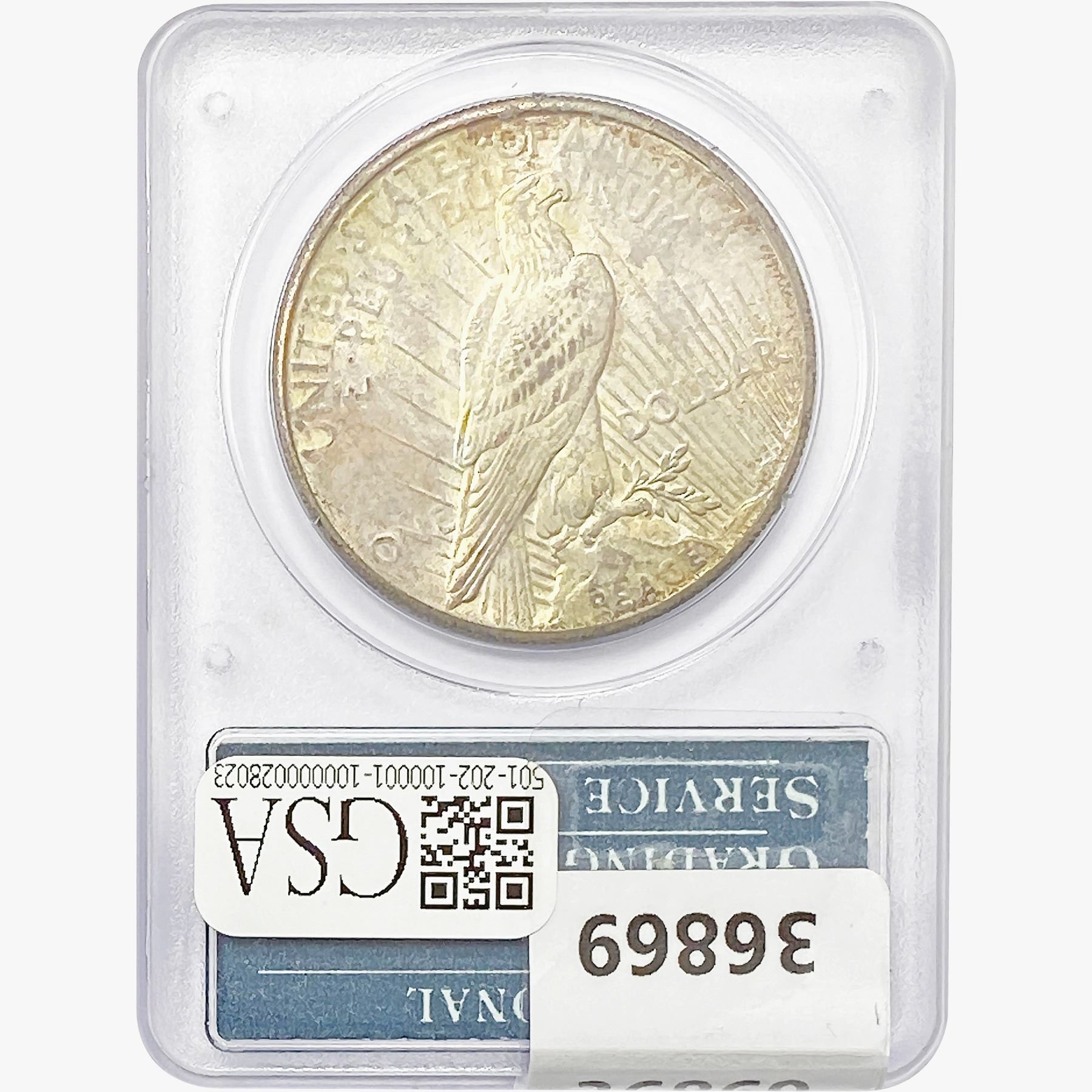 COINS AND CURRENCY LISTED IN GSA’S CATALOG AS GRADED AND ENCAPSULATED BY PCGS, NGC, ANACS, ICG, PCGS CURRENCY, PMG, PCGS BANKNOTE GRADING, CMC OR ANY OTHER THIRD-PARTY GRADING SERVICE ARE LIKEWISE SOLD “AS-IS” EXCEPT AS EXPRESSLY SET FORTH HEREIN. ALL THIRD-PARTY GRADING SERVICE GUARANTEES, INCLUDING AUTHENTICITY, ARE THE SOLE RESPONSIBILITY OF THE THIRD-PARTY GRADING SERVICE AND NOT WARRANTIES OR GUARANTEES OF GSA. BIDDERS SHOULD CONTACT THESE THIRD-PARTY GRADING SERVICES DIRECTLY WITH RESPECT TO ANY CLAIMS OR QUESTIONS THEY MAY HAVE CONCERNING THEIR GUARANTEES AND WARRANTIES. BIDDERS ACKNOWLEDGE AND AGREE THAT AUCTIONEER IS NOT BOUND BY OR LIABLE FOR ANY OPINION OR CERTIFICATION BY ANY THIRD-PARTY GRADING SERVICE. REMOVAL OF A PRODUCT FROM ITS PROTECTIVE CASING OR HOLDER OR ALTERATION OF ANY COIN HOLDER WAIVES ALL RIGHTS CONCERNING THE PRODUCT CONTAINED THEREIN.