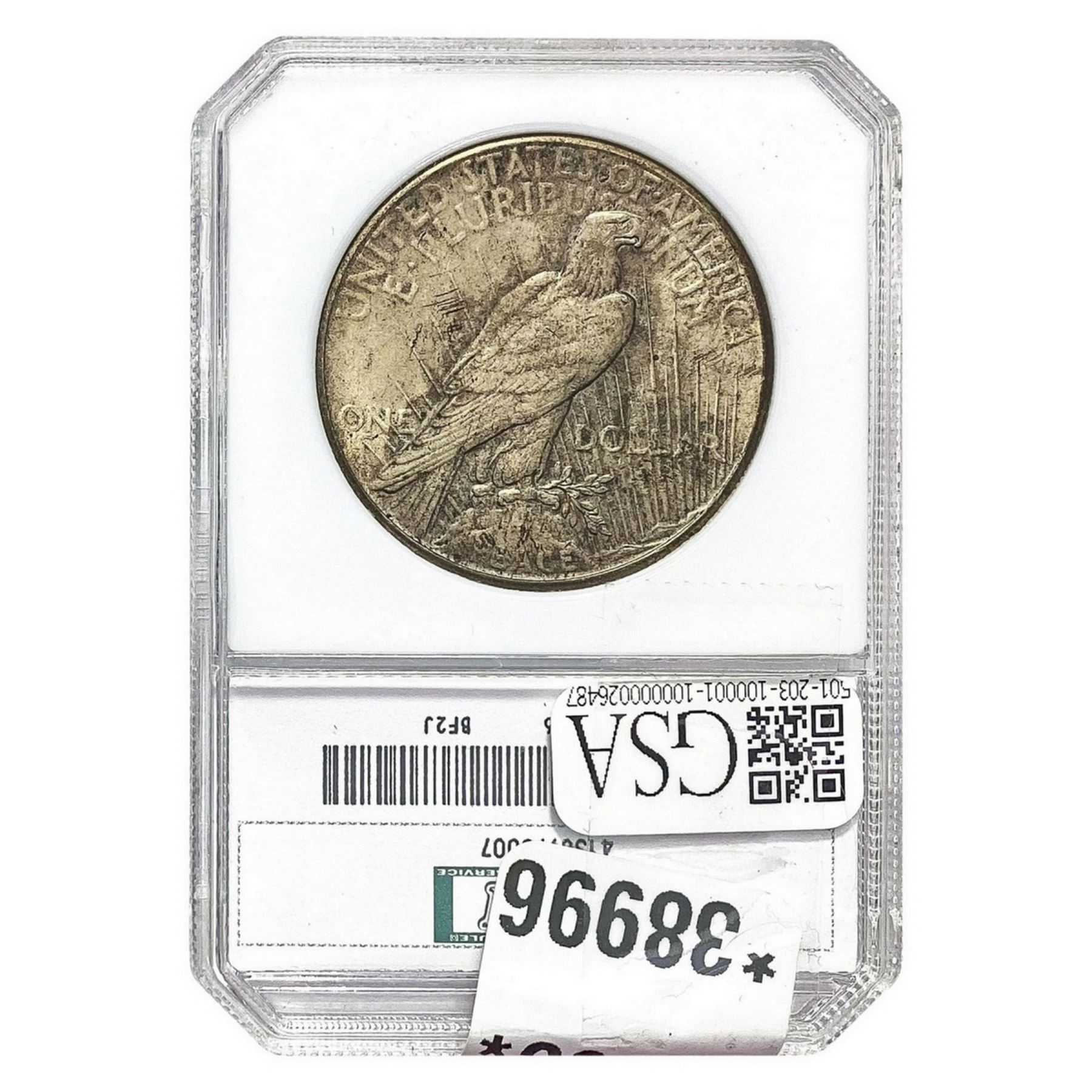 h. Since GSA cannot examine encapsulated coins or notes, they are sold “AS IS” without GSA’s grading opinion, and may not be returned for any reason. GSA shall not be liable for any patent or latent defect or controversy pertaining to or arising from any encapsulated Product. In any such instance, Bidder’s remedy, if any, shall be solely against the service certifying the Product.