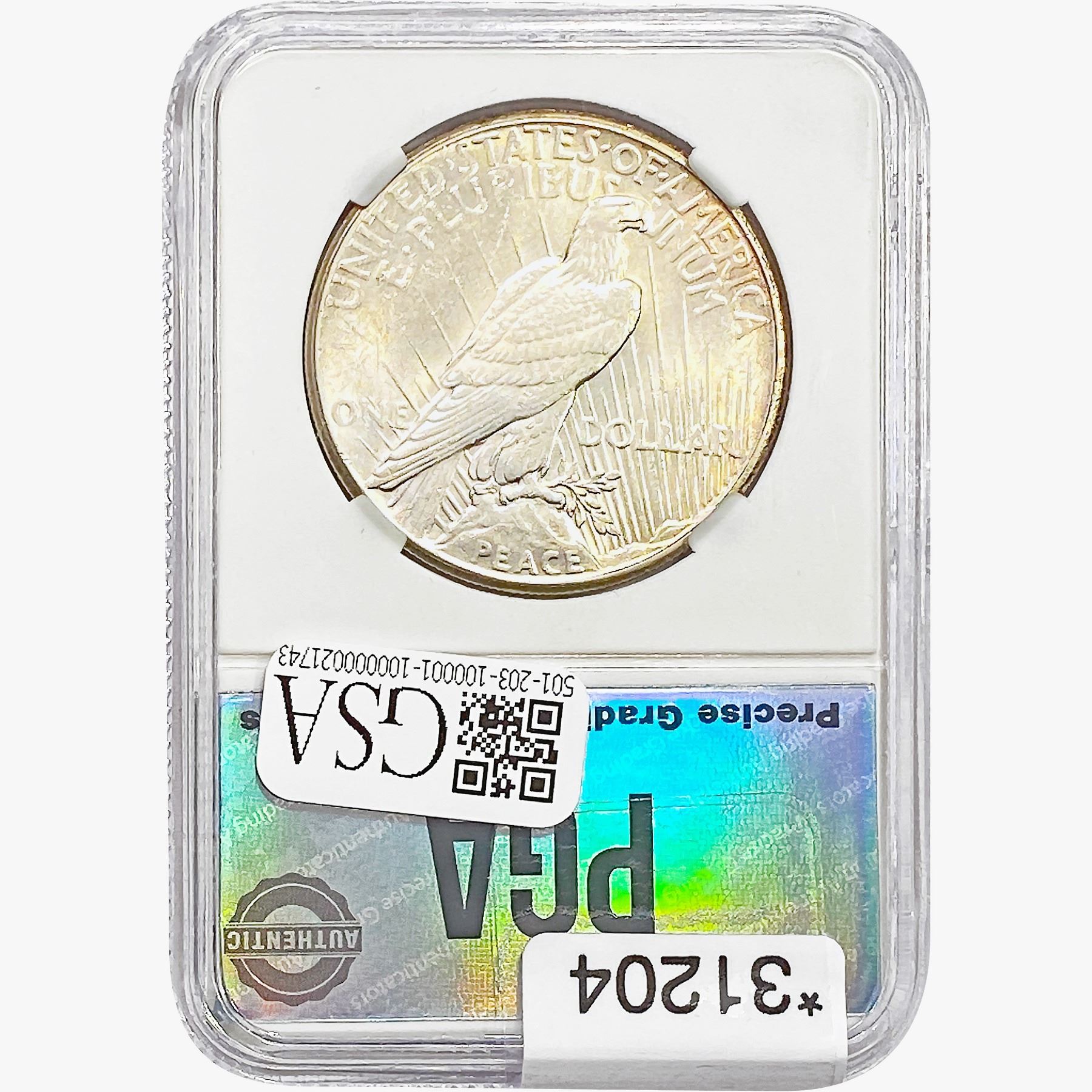 COINS AND CURRENCY LISTED IN GSA’S CATALOG AS GRADED AND ENCAPSULATED BY PCGS, NGC, ANACS, ICG, PCGS CURRENCY, PMG, PCGS BANKNOTE GRADING, CMC OR ANY OTHER THIRD-PARTY GRADING SERVICE ARE LIKEWISE SOLD “AS-IS” EXCEPT AS EXPRESSLY SET FORTH HEREIN. ALL THIRD-PARTY GRADING SERVICE GUARANTEES, INCLUDING AUTHENTICITY, ARE THE SOLE RESPONSIBILITY OF THE THIRD-PARTY GRADING SERVICE AND NOT WARRANTIES OR GUARANTEES OF GSA. BIDDERS SHOULD CONTACT THESE THIRD-PARTY GRADING SERVICES DIRECTLY WITH RESPECT TO ANY CLAIMS OR QUESTIONS THEY MAY HAVE CONCERNING THEIR GUARANTEES AND WARRANTIES. BIDDERS ACKNOWLEDGE AND AGREE THAT AUCTIONEER IS NOT BOUND BY OR LIABLE FOR ANY OPINION OR CERTIFICATION BY ANY THIRD-PARTY GRADING SERVICE. REMOVAL OF A PRODUCT FROM ITS PROTECTIVE CASING OR HOLDER OR ALTERATION OF ANY COIN HOLDER WAIVES ALL RIGHTS CONCERNING THE PRODUCT CONTAINED THEREIN.