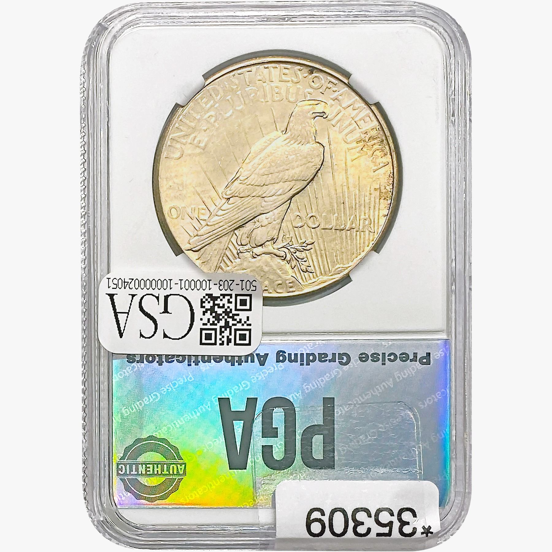 h. Since GSA cannot examine encapsulated coins or notes, they are sold “AS IS” without GSA’s grading opinion, and may not be returned for any reason. GSA shall not be liable for any patent or latent defect or controversy pertaining to or arising from any encapsulated Product. In any such instance, Bidder’s remedy, if any, shall be solely against the service certifying the Product.