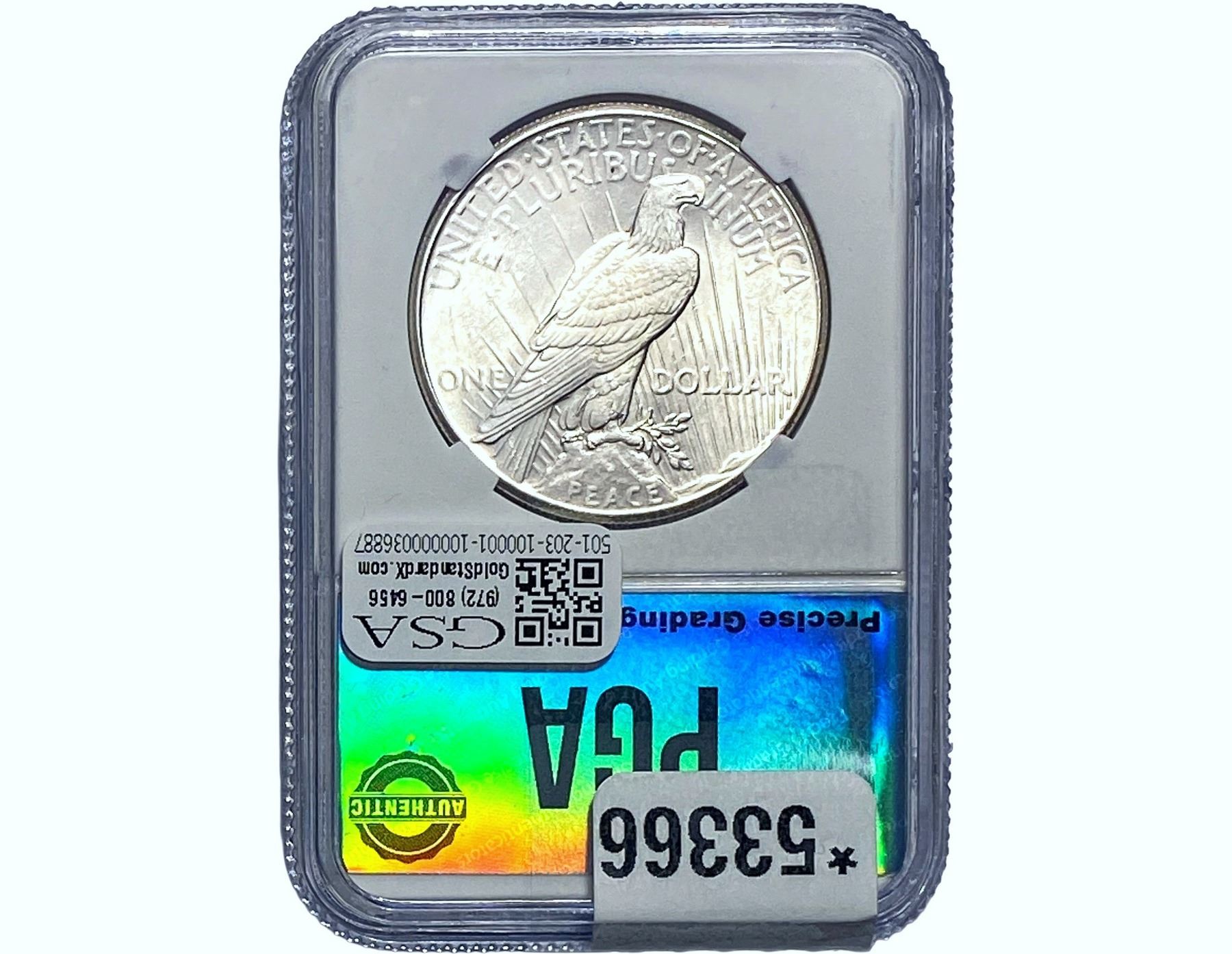 l. All non-certified coins and currency are guaranteed genuine, but are not guaranteed as to grade, since grading is a matter of opinion, an art and not a science, and therefore the description rendered by GSA or any third-party grading service may not agree with the opinion of others (including trained experts), and the same expert may not grade the same item with the same grade at two different times. GSA may, but is not obligated to, express an opinion as to non-certified numismatic items, in GSA’s opinion, or by its employees’ experience and the current interpretation of the American Numismatic Association’s standards as of the date the catalog was prepared. There is no guarantee or warranty expressed or implied that the grading opinions utilized by GSA, if any, will meet the standards of any grading service at any time in the future.