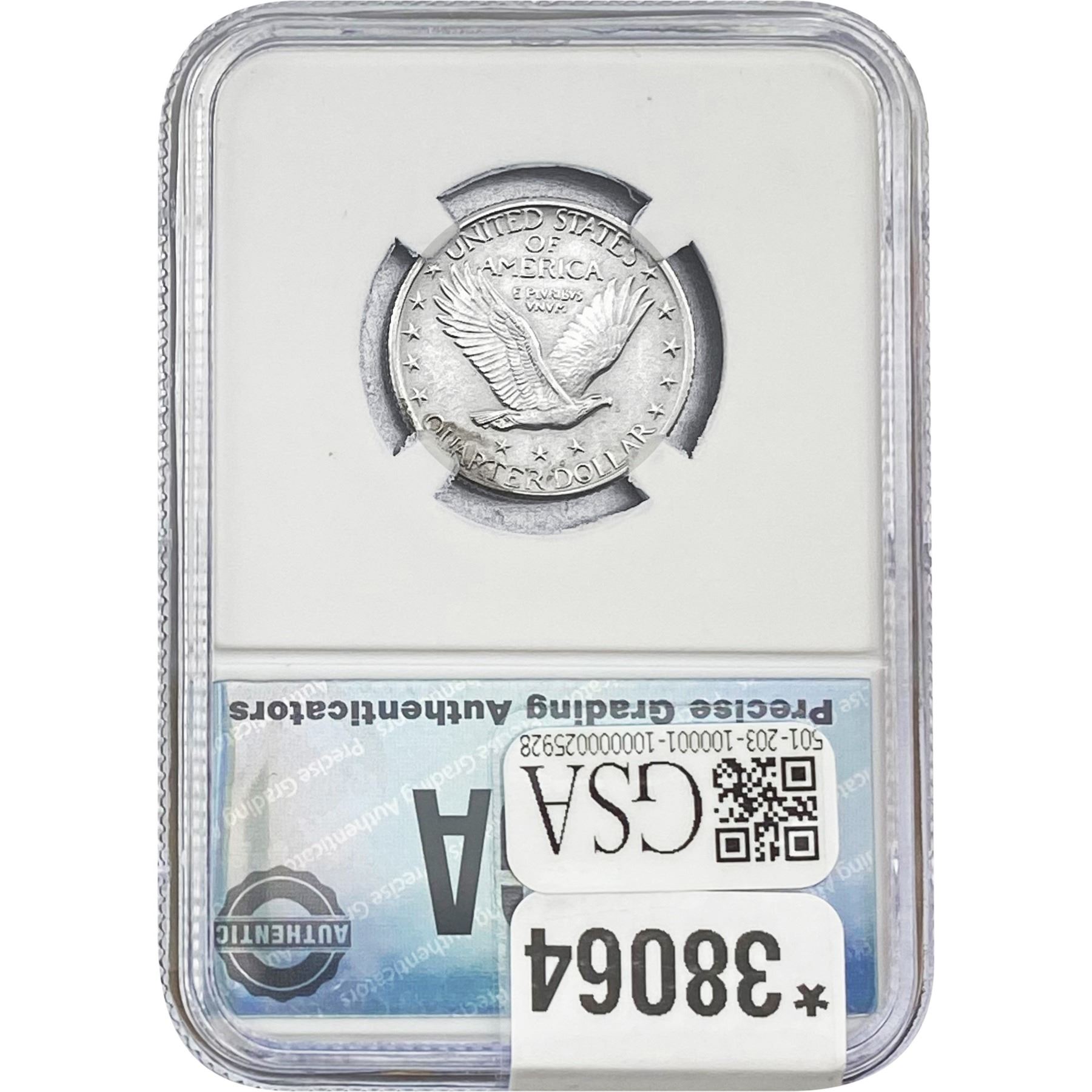 COINS AND CURRENCY LISTED IN GSA’S CATALOG AS GRADED AND ENCAPSULATED BY PCGS, NGC, ANACS, ICG, PCGS CURRENCY, PMG, PCGS BANKNOTE GRADING, CMC OR ANY OTHER THIRD-PARTY GRADING SERVICE ARE LIKEWISE SOLD “AS-IS” EXCEPT AS EXPRESSLY SET FORTH HEREIN. ALL THIRD-PARTY GRADING SERVICE GUARANTEES, INCLUDING AUTHENTICITY, ARE THE SOLE RESPONSIBILITY OF THE THIRD-PARTY GRADING SERVICE AND NOT WARRANTIES OR GUARANTEES OF GSA. BIDDERS SHOULD CONTACT THESE THIRD-PARTY GRADING SERVICES DIRECTLY WITH RESPECT TO ANY CLAIMS OR QUESTIONS THEY MAY HAVE CONCERNING THEIR GUARANTEES AND WARRANTIES. BIDDERS ACKNOWLEDGE AND AGREE THAT AUCTIONEER IS NOT BOUND BY OR LIABLE FOR ANY OPINION OR CERTIFICATION BY ANY THIRD-PARTY GRADING SERVICE. REMOVAL OF A PRODUCT FROM ITS PROTECTIVE CASING OR HOLDER OR ALTERATION OF ANY COIN HOLDER WAIVES ALL RIGHTS CONCERNING THE PRODUCT CONTAINED THEREIN.