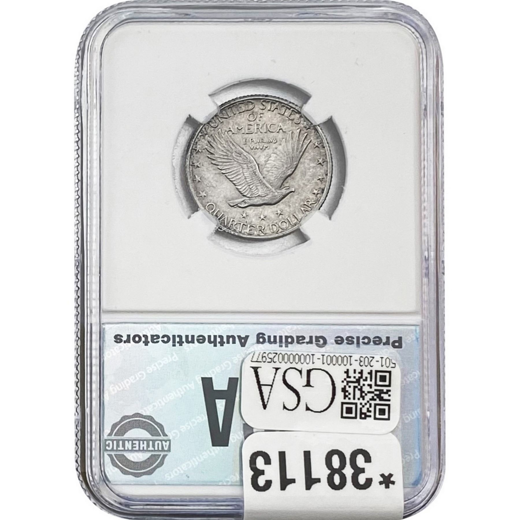 COINS AND CURRENCY LISTED IN GSA’S CATALOG AS GRADED AND ENCAPSULATED BY PCGS, NGC, ANACS, ICG, PCGS CURRENCY, PMG, PCGS BANKNOTE GRADING, CMC OR ANY OTHER THIRD-PARTY GRADING SERVICE ARE LIKEWISE SOLD “AS-IS” EXCEPT AS EXPRESSLY SET FORTH HEREIN. ALL THIRD-PARTY GRADING SERVICE GUARANTEES, INCLUDING AUTHENTICITY, ARE THE SOLE RESPONSIBILITY OF THE THIRD-PARTY GRADING SERVICE AND NOT WARRANTIES OR GUARANTEES OF GSA. BIDDERS SHOULD CONTACT THESE THIRD-PARTY GRADING SERVICES DIRECTLY WITH RESPECT TO ANY CLAIMS OR QUESTIONS THEY MAY HAVE CONCERNING THEIR GUARANTEES AND WARRANTIES. BIDDERS ACKNOWLEDGE AND AGREE THAT AUCTIONEER IS NOT BOUND BY OR LIABLE FOR ANY OPINION OR CERTIFICATION BY ANY THIRD-PARTY GRADING SERVICE. REMOVAL OF A PRODUCT FROM ITS PROTECTIVE CASING OR HOLDER OR ALTERATION OF ANY COIN HOLDER WAIVES ALL RIGHTS CONCERNING THE PRODUCT CONTAINED THEREIN.