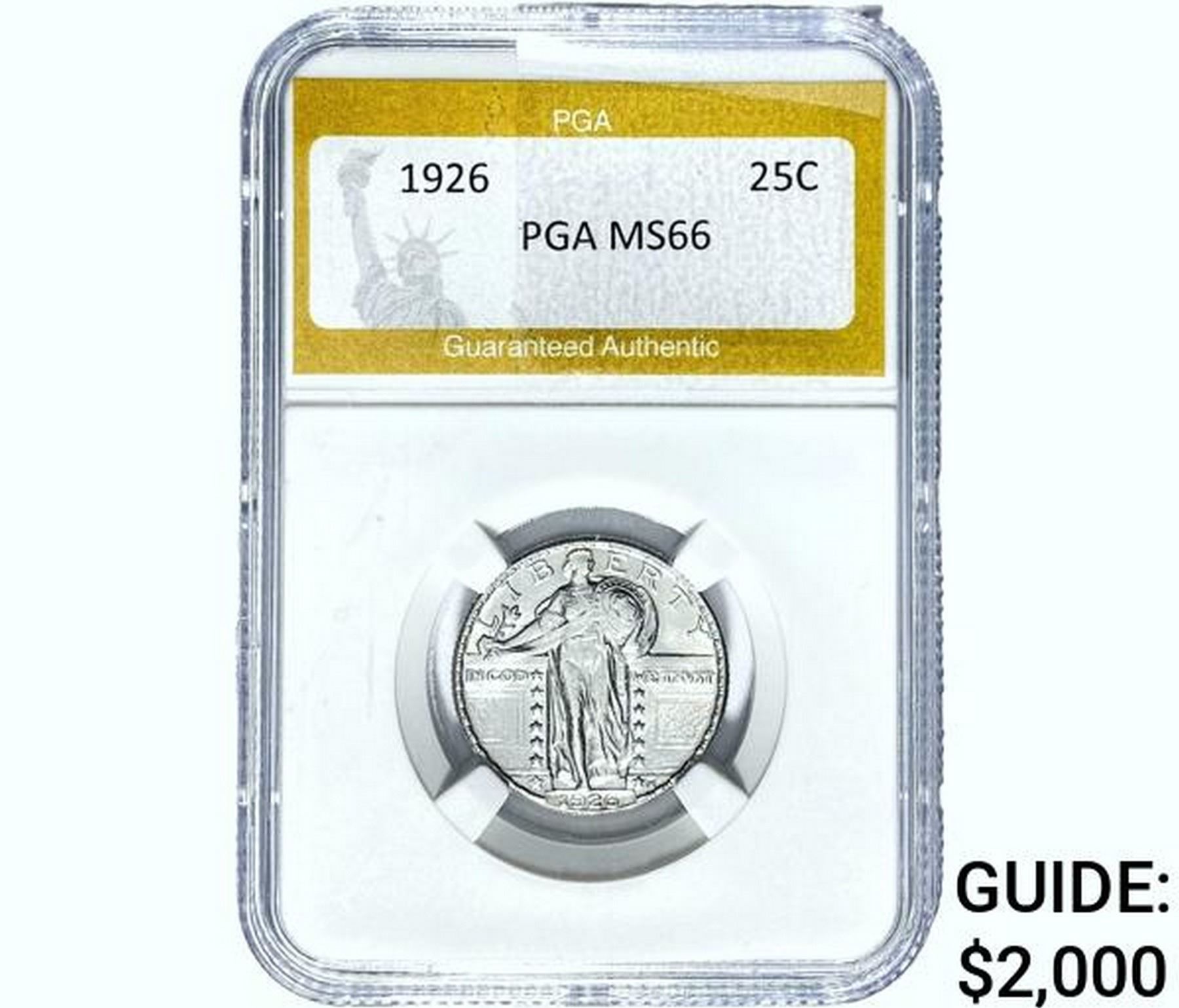 COINS AND CURRENCY LISTED IN GSA’S CATALOG AS GRADED AND ENCAPSULATED BY PCGS, NGC, ANACS, ICG, PCGS CURRENCY, PMG, PCGS BANKNOTE GRADING, CMC OR ANY OTHER THIRD-PARTY GRADING SERVICE ARE LIKEWISE SOLD “AS-IS” EXCEPT AS EXPRESSLY SET FORTH HEREIN. ALL THIRD-PARTY GRADING SERVICE GUARANTEES, INCLUDING AUTHENTICITY, ARE THE SOLE RESPONSIBILITY OF THE THIRD-PARTY GRADING SERVICE AND NOT WARRANTIES OR GUARANTEES OF GSA. BIDDERS SHOULD CONTACT THESE THIRD-PARTY GRADING SERVICES DIRECTLY WITH RESPECT TO ANY CLAIMS OR QUESTIONS THEY MAY HAVE CONCERNING THEIR GUARANTEES AND WARRANTIES. BIDDERS ACKNOWLEDGE AND AGREE THAT AUCTIONEER IS NOT BOUND BY OR LIABLE FOR ANY OPINION OR CERTIFICATION BY ANY THIRD-PARTY GRADING SERVICE. REMOVAL OF A PRODUCT FROM ITS PROTECTIVE CASING OR HOLDER OR ALTERATION OF ANY COIN HOLDER WAIVES ALL RIGHTS CONCERNING THE PRODUCT CONTAINED THEREIN.