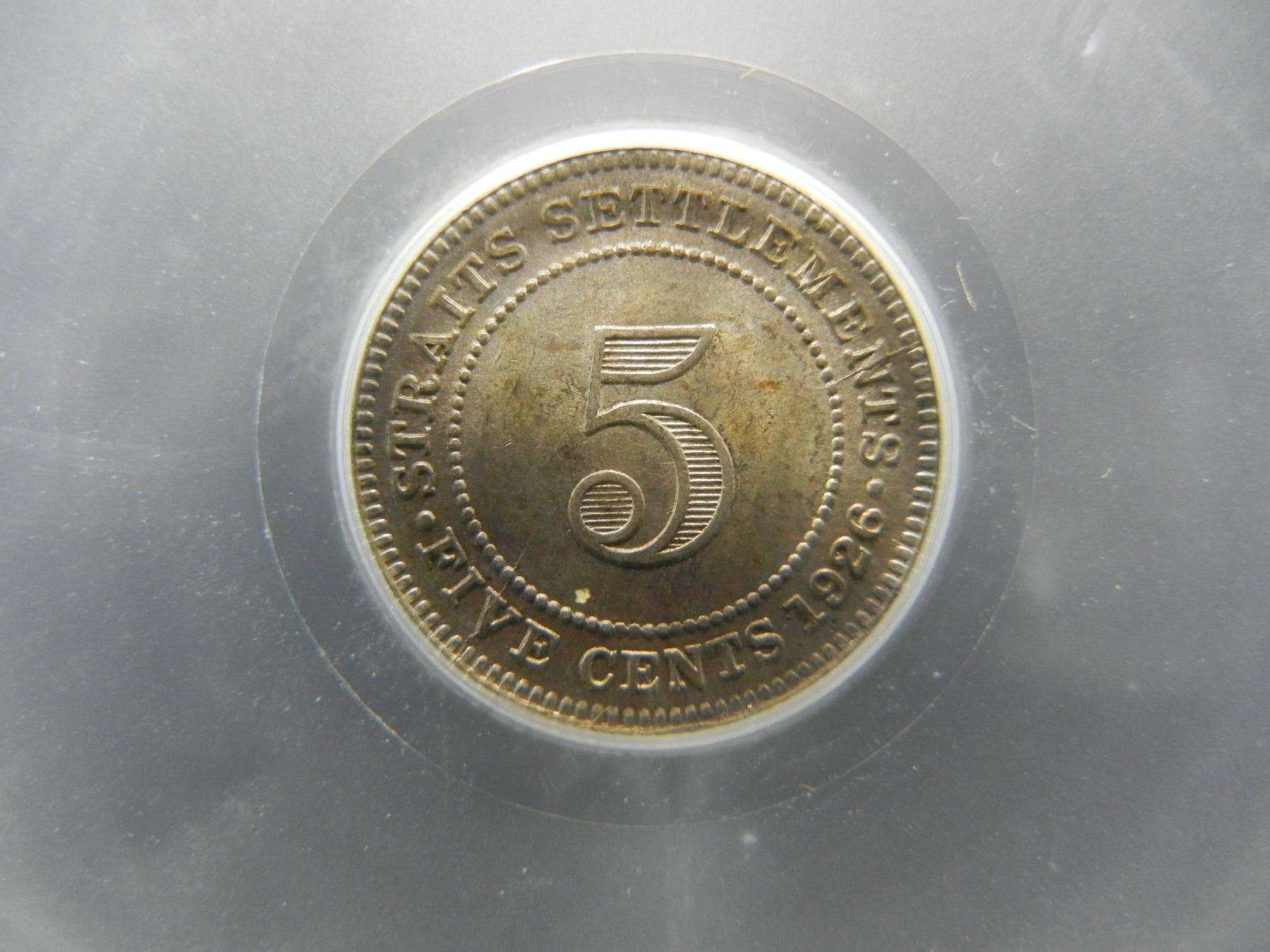 1926 Straights Settlements 5 Cents. SEGS MS-63.