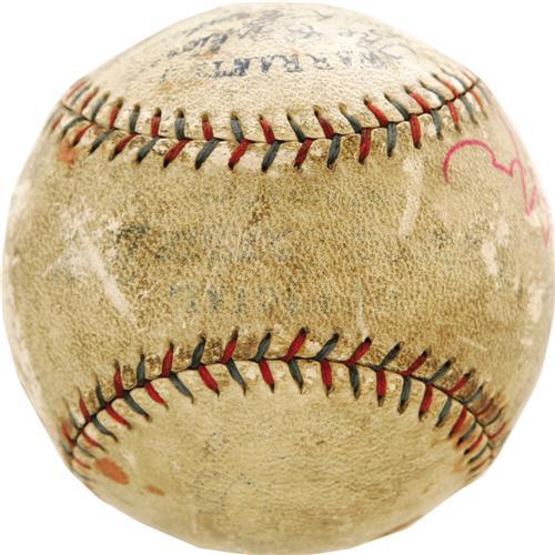 <B>1926 Ty Cobb Single Signed Baseball.</B></I> A tough playing-days autograph from baseball's first superstar. This would be the twenty-second and final season that the Georgia Peach would represent the Detroit Tigers, who fell to the Cleveland Indians this day in a seven to five loss at Tiger Stadium. Cobb's 6/10 sweet spot signature is preceded by a personalization that has faded into illegibility, but Cobb's handwritten "July 3 - 26" below his signature remains quite bold. The OAL (Johnson) ball shows a moderate degree of wear and has an odd scribble of red ink on the panel below Cobb's autograph that will be invisible upon display. Far more difficult (and appealing) than the majority of Cobb singles that date from the later years of his life. <I>LOA from PSA/DNA.</B></I>