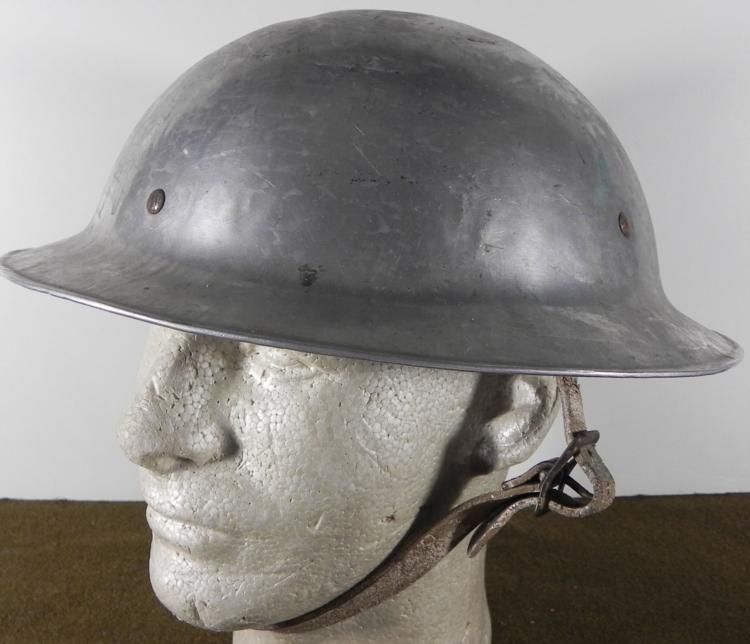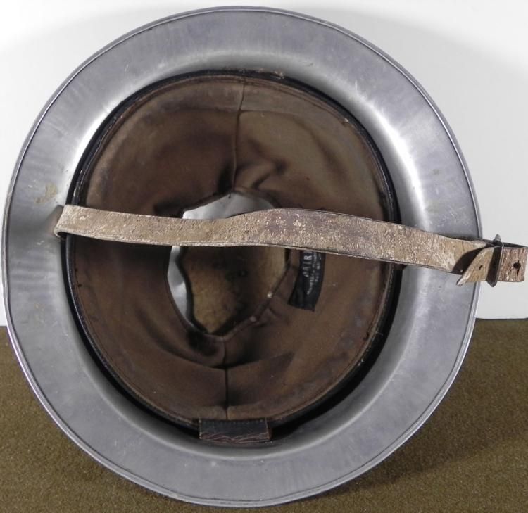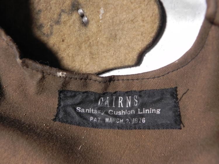 WWI U.S. DOUGHBOY ALUMINUM PARADE HELMET PAT DATED 1926 BY CAIRNS * HARD TO FING HELMET-POST WWI USED FOR MILITARY PARADES--HAS CHINSTRAP & LINER--TAG MARKED CAIRNS-PAT DATED MARCH 1926. *