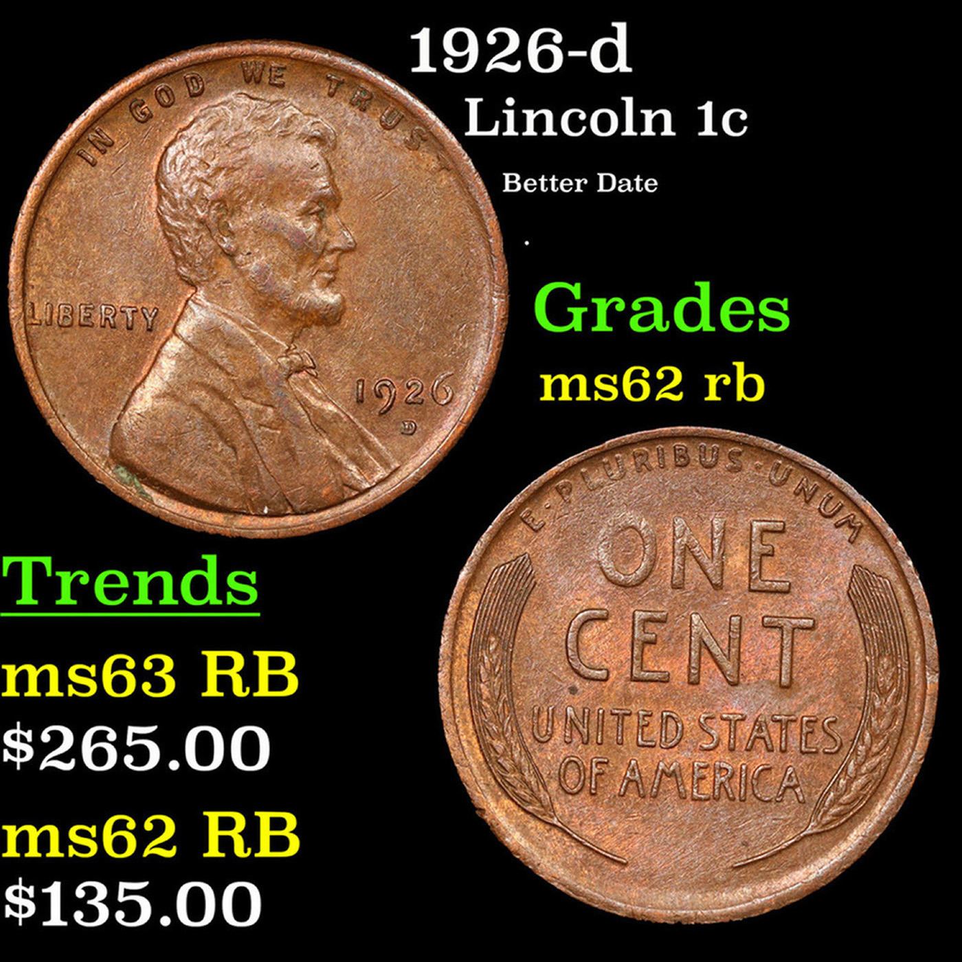 1926-d Lincoln Cent 1c Grades Select Unc RB.