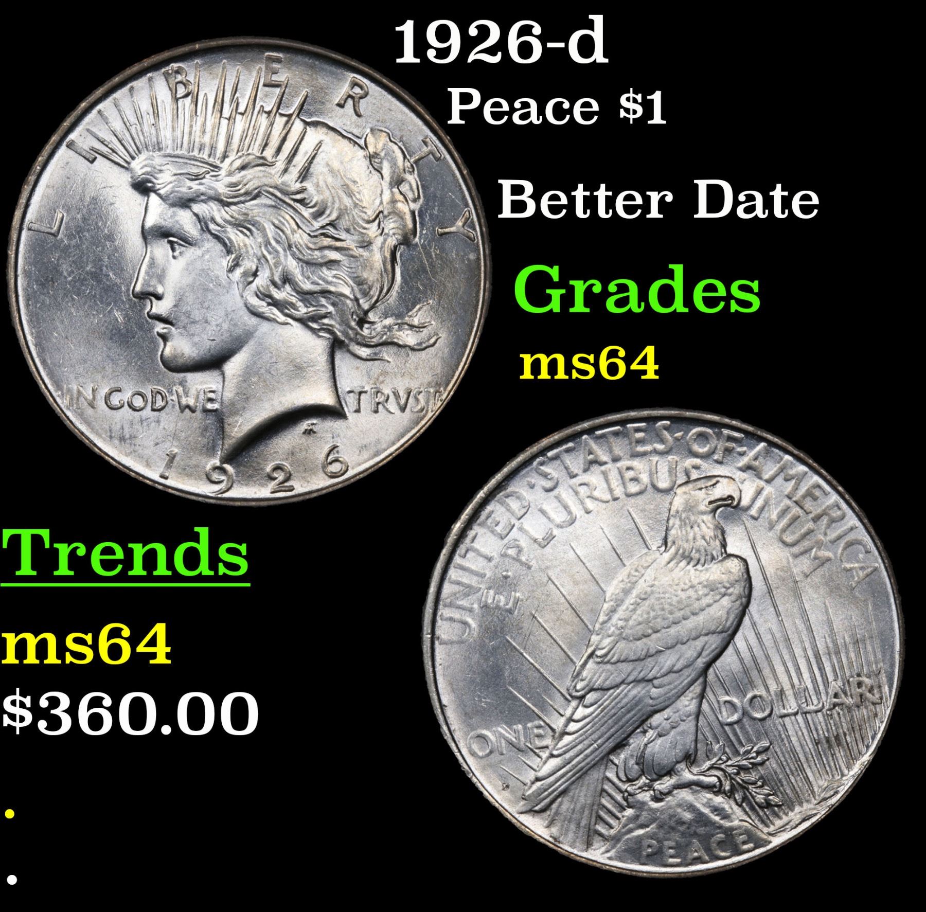 1926-d Peace Dollar $1 Grades Choice Unc.