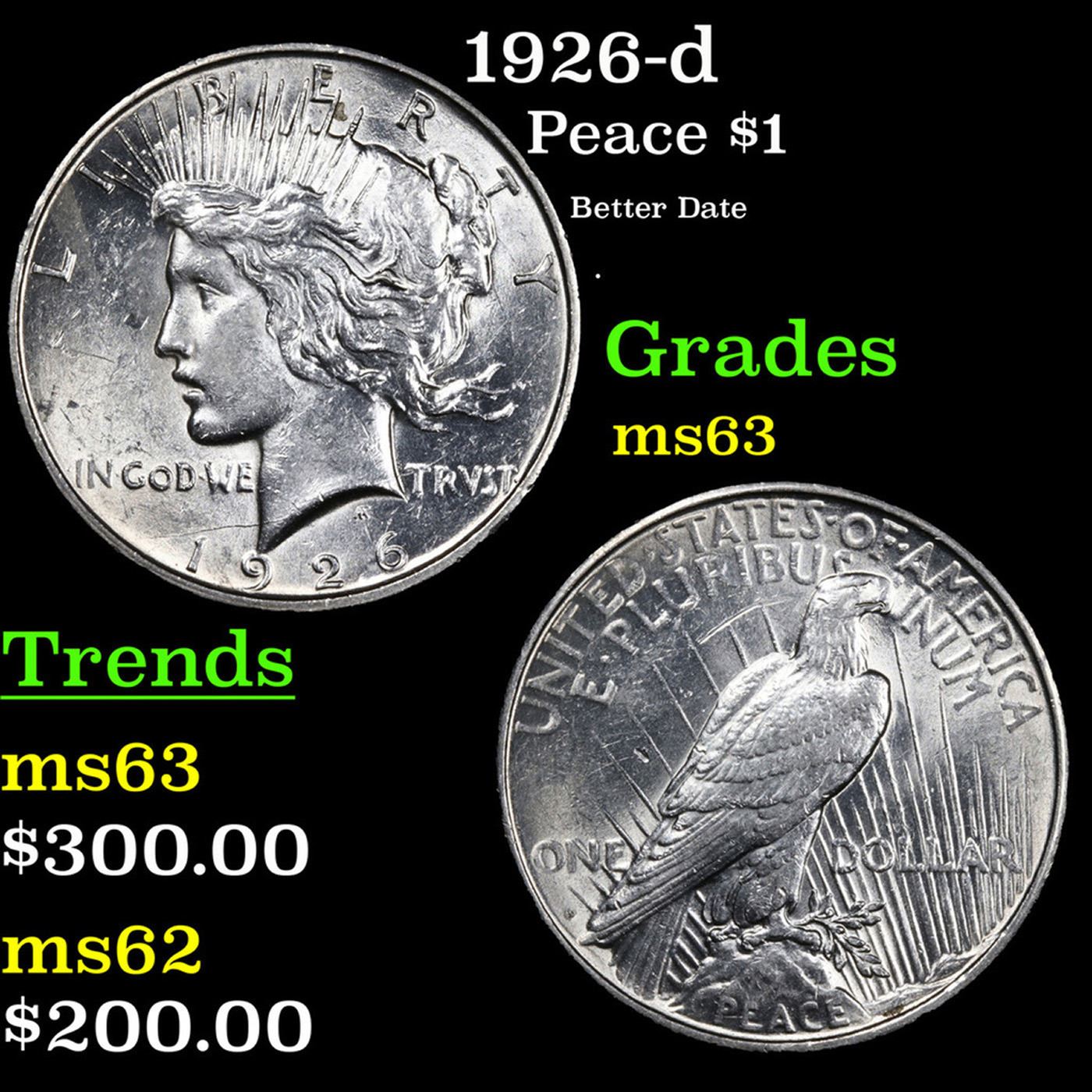 1926-d Peace Dollar $1 Grades Select Unc.