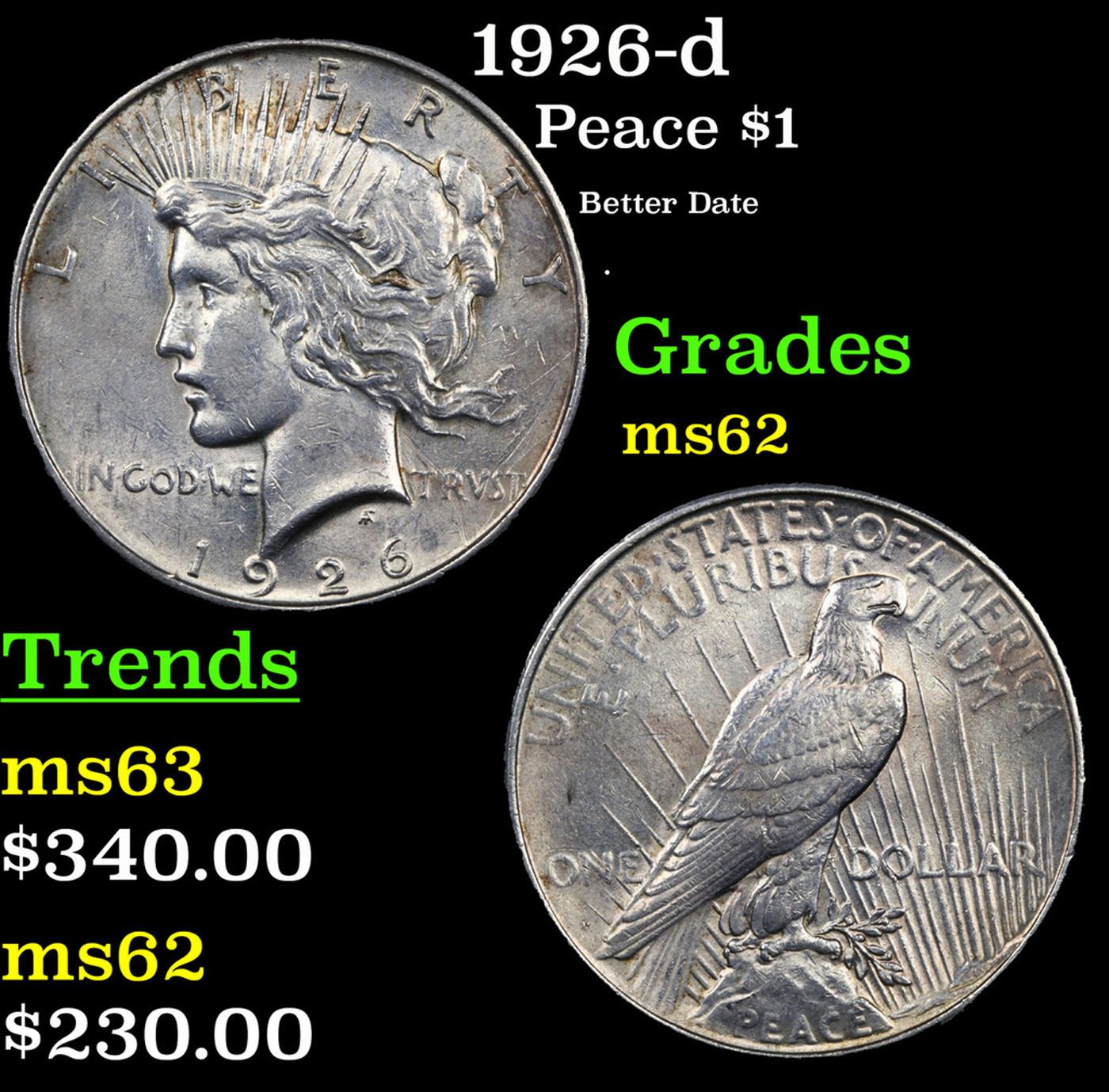 1926-d Peace Dollar $1 Grades Select Unc.